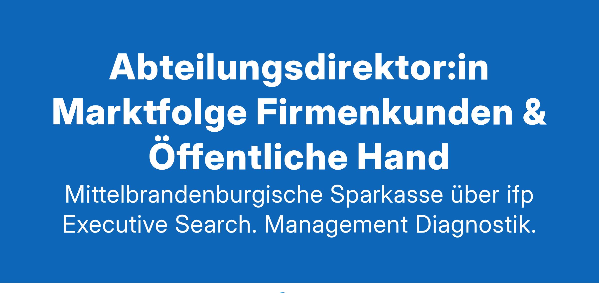 Die Mittelbrandenburgische Sparkasse mit Sitz in Potsdam zählt mit einer Bilanzsumme von rund 16,1 Mrd. € und mehr als 1.400 Mitarbeitenden zu den größten Sparkassen in Deutschland. Sie blickt auf eine langjährige Historie zurück und ist mit ihrer erfolgreichen wirtschaftlichen Entwicklung bestens für die Zukunft gerüstet. Im großflächigen Geschäftsgebiet ist das Institut für private und gewerbliche Kunden präsent und als verlässlicher Finanzpartner etabliert. Im Zuge einer altersbedingten Nachfolgeregelung wird eine analytisch starke und unternehmerisch agierende Führungspersönlichkeit gesucht.