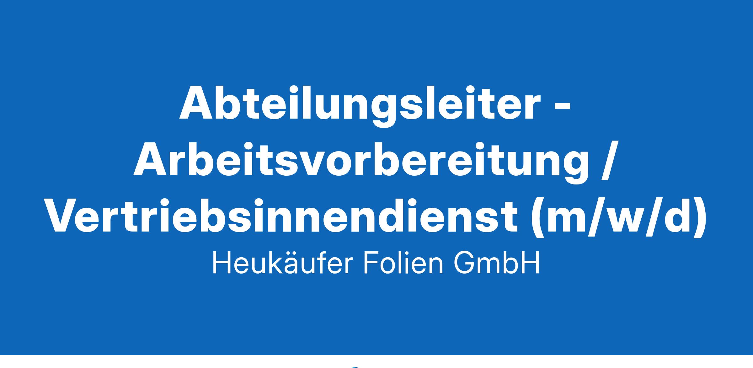Bereits seit vielen Jahrzehnten befasst sich die Heukäufer Folien GmbH als mittelständiges Familienunternehmen am Standort in Herten, im Ruhrgebiet, mit der Entwicklung und Produktion hochwertiger Verpackungsfolien und ist in dieser Zeit zu einem anerkannten Spezialisten und zuverlässigen Partner in ganz Europa geworden. Wir suchen zur Verstärkung unseres Teams zum nächstmöglichen Zeitpunkt, oder nach Absprache in Vollzeit: Abteilungsleiter – Arbeitsvorbereitung / Vertriebsinnendienst (m/w/d) Ihre Aufgaben Leitung und Steuerung der Arbeitsvorbereitung / des Vertriebsinnendienstes mit Verantwortung für die Organisation und Optimierung der internen Prozesse Führung und Motivation des Teams zur Erreichung der Umsatzziele und Steigerung der Kundenzufriedenheit Enge Zusammenarbeit mit dem Außendienst, um die strategische Erschließung neuer Kundenpotenziale zu unterstützen und die bestehenden Kundenbeziehungen zu pflegen Entwicklung und Umsetzung von Lösungskonzepten gemeinsam mit dem Team und den Kunden Teilnahme an Meetings, Messen, Tagungen, etc. Ihre Qualifikation Mehrjährige Berufserfahrung im Vertriebsinnendienst oder in einer vergleichbaren Position, idealerweise mit Führungsverantwortung Führungskompetenzen und die Fähigkeit, ein Team zu leiten und zu motivieren Starke kommunikative Fähigkeiten sowie eine ausgeprägte Kundenorientierung. Abgeschlossene kaufmännische oder technische Ausbildung Selbstständige und strukturierte Arbeitsweise Gute MS-Office-Kenntnisse und die Bereitschaft, sich in unternehmensspezifische Softwarelösungen (ERP-System) einzuarbeiten Unsere Leistung für Sie 26-30 Tage Urlaub Heiligabend / Silvester frei Zusammenhängender Urlaub von 3 Wochen mgl. Sonderurlaub für Todesfall Nutzung von Werkswohnungen Weiterarbeit nach Pensionierung Ideale Bahn- und Autobahnanbindung Gratifikation Jubiläumszuwendung Betriebliche Altersvorsorge Attraktive Zuschläge für Nacht-, Sonn und Feiertagsarbeit Arbeitskleidung wird gestellt – jährlich neue Sicherheitsschuhe Unser Unternehmen legt großen Wert auf die Förderung von Vielfalt in all ihren Facetten. Wir pflegen daher eine Kultur, die von gegenseitigem Respekt und Wertschätzung geprägt ist. Dabei ist für uns die Förderung von Chancengleichheit selbstverständlich, weshalb wir Bewerbungen aus allen Altersgruppen, unabhängig von Geschlecht, kultureller und sozialer Herkunft, Religion, Nationalität, Behinderung, Weltanschauung und sexueller Orientierung gleichermaßen begrüßen. Haben wir Ihr Interesse geweckt? Wenn Sie die Dinge entschlossen angehen, gerne mit Menschen umgehen und bereit sind, Verantwortung zu übernehmen, dann zögern Sie nicht und senden Sie uns Ihre vollständigen Bewerbungsunterlagen (Lebenslauf und Zeugnisse) per Mail an: n.weiler[AT]heukaeufer-folien.de oder bewerben Sie sich unsere Webseite https://heukaeufer-folien.de/karriere/ Wir freuen uns auf Sie. Heukäufer Folien GmbH