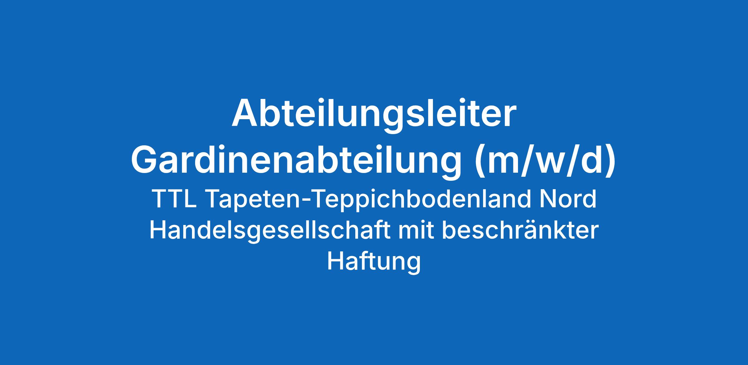 Bei TTL/TTM sind Sie mehr als ein Abteilungsleiter – Sie sind der Taktgeber und die treibende Kraft, die unserer Gardinenabteilung ihre besondere Handschrift verleiht.