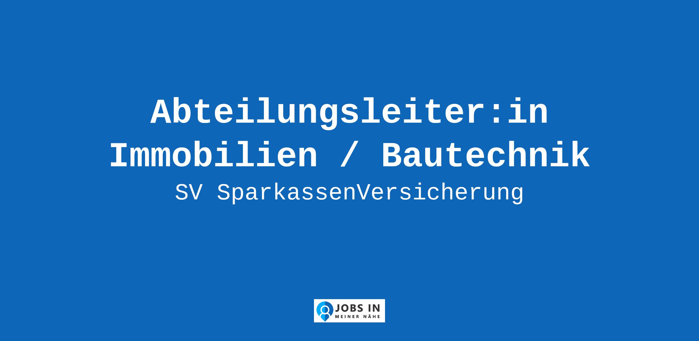 Abteilungsleiter:in Immobilien / Bautechnik für unseren Standort in Stuttgart Unser Konzern mit rund 5.000 Menschen und mehreren Standorten ist Teil der Sparkassen-Finanzgruppe und bietet alle Arten von Versicherungen. Mit innovativen Produkten sind wir am Markt bestens positioniert. Bei ... Projektberichte;Bestehende Prozesse;IT-Standard;SAP S/4HANA;Budgetverantwortung;Kommunikation;Vertrieb;MRICS;VOB;Hoch- und Tiefbau;kollegial;EBS;Handel;Sparkassen;Vermögensverwaltung;Umsetzungsstärke;Real Estate;Bautechnik;HOAI;Versicherungswesen;Servicearbeiten;Architektur;Überwachung;Berichterstattung;Projektmanagement;Planung;Teamleitung;Kostenkontrolle;Bildungsarbeit;Verantwortung;Berichterstattung;Asset Original Stellenanzeige auf StepStone.de – Jetzt Jobagent bei StepStone einrichten und Traumjob finden! https://bit.ly/2KOagYD Mehr Informationen zu Arbeitgebern, Gehaltsdaten und Karrieretipps finden Sie auf StepStone.de