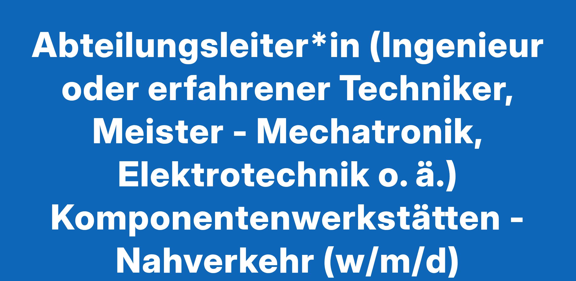 Abteilungsleiter*in (Ingenieur oder erfahrener Techniker, Meister - Mechatronik, Elektrotechnik o. ä.) Komponentenwerkstätten - Nahverkehr (w/m/d)