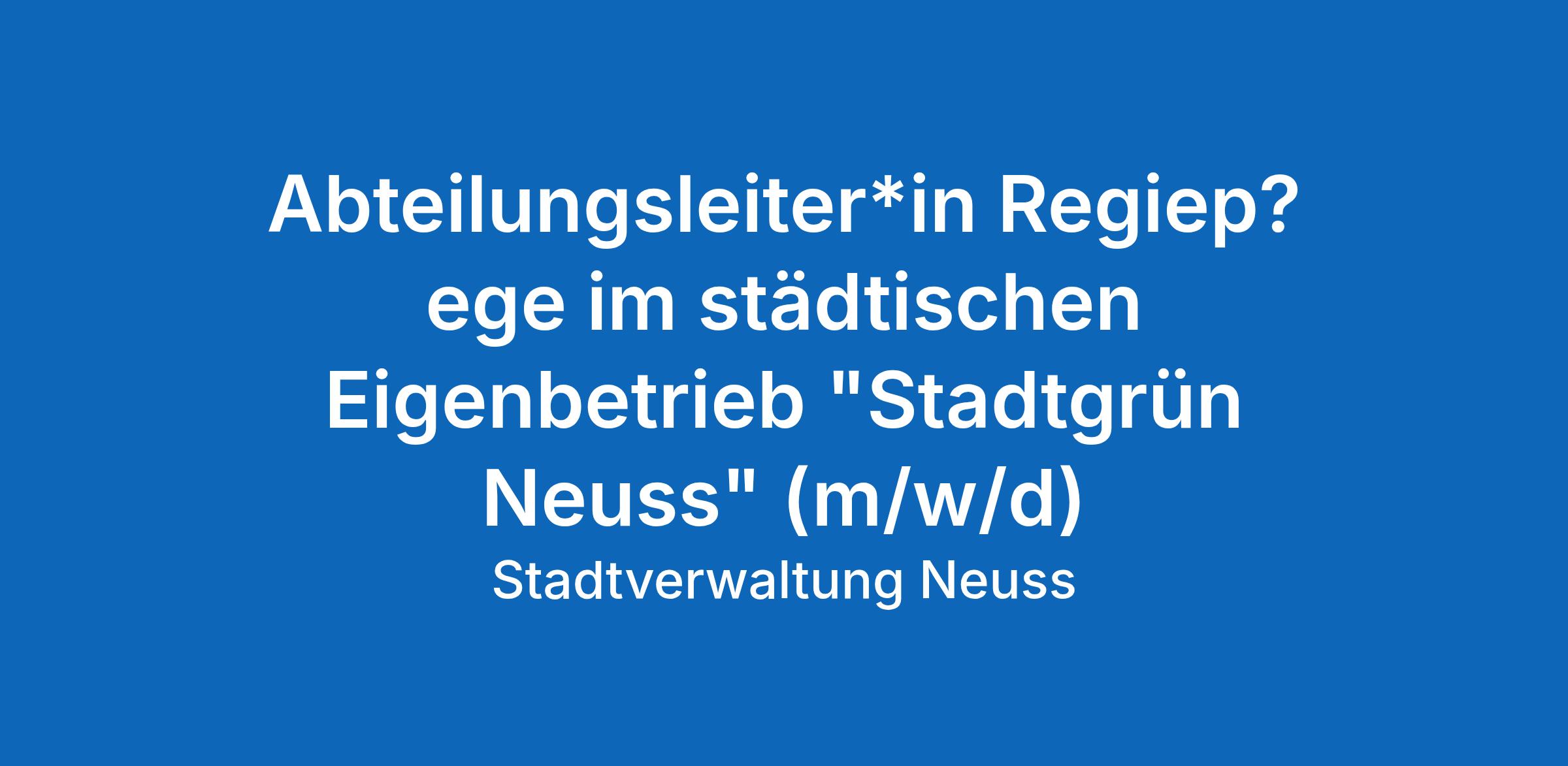 Werde Teil unseres Teams bei „Stadtgrün Neuss“ (SGN) – Dein Job. Dein Neuss.