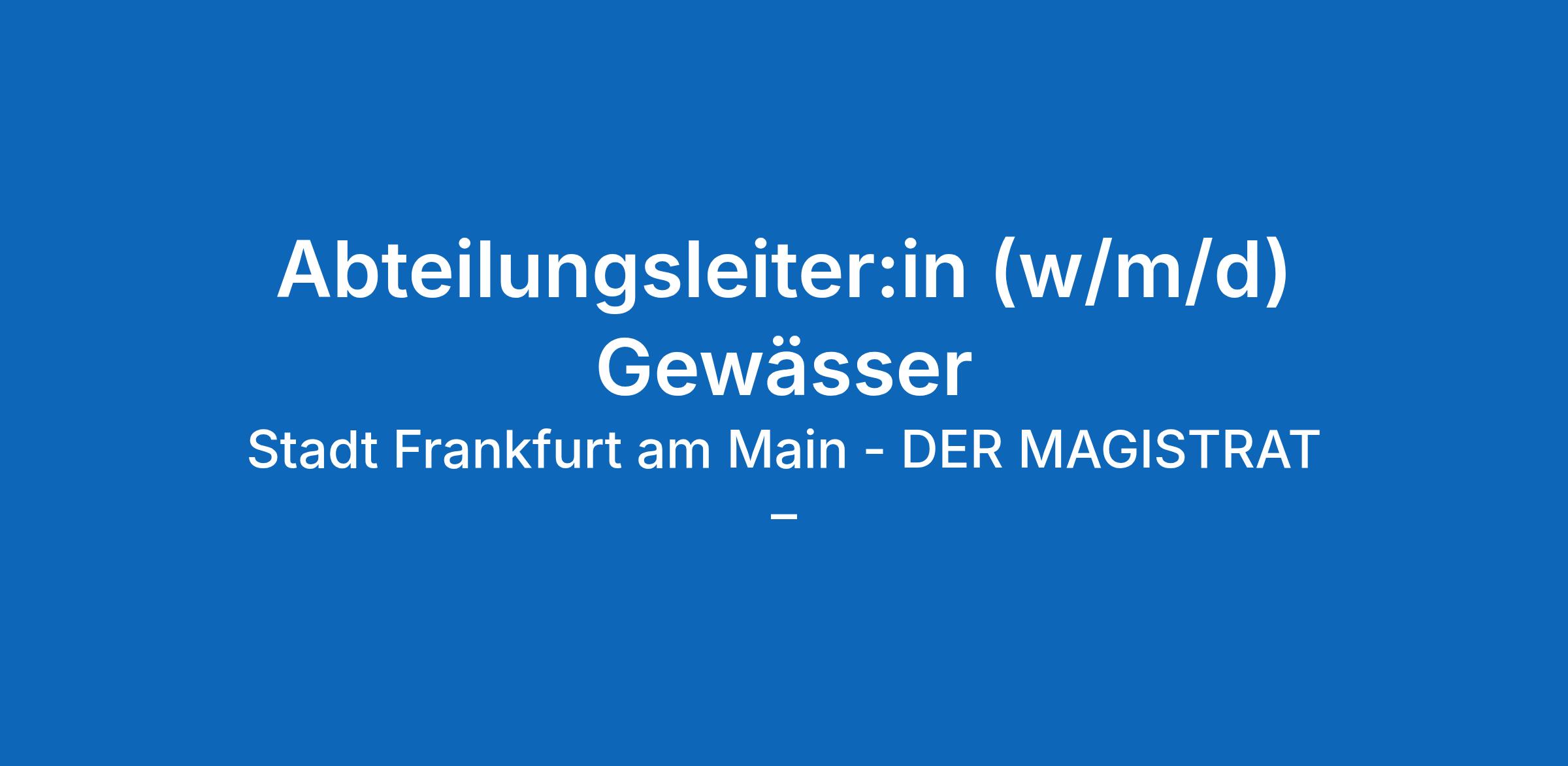 Jede Bewegung braucht Menschen, die überzeugt vorangehen. Darum suchen wir Sie als Abteilungsleiter:in (w/m/d) Gewässer für unser Stadt-Up Frankfurt! Bereit für eine Aufgabe für Herz und Verstand? Bewerben Sie sich jetzt und führen Sie das Team Frankfurt in die Zukunft!