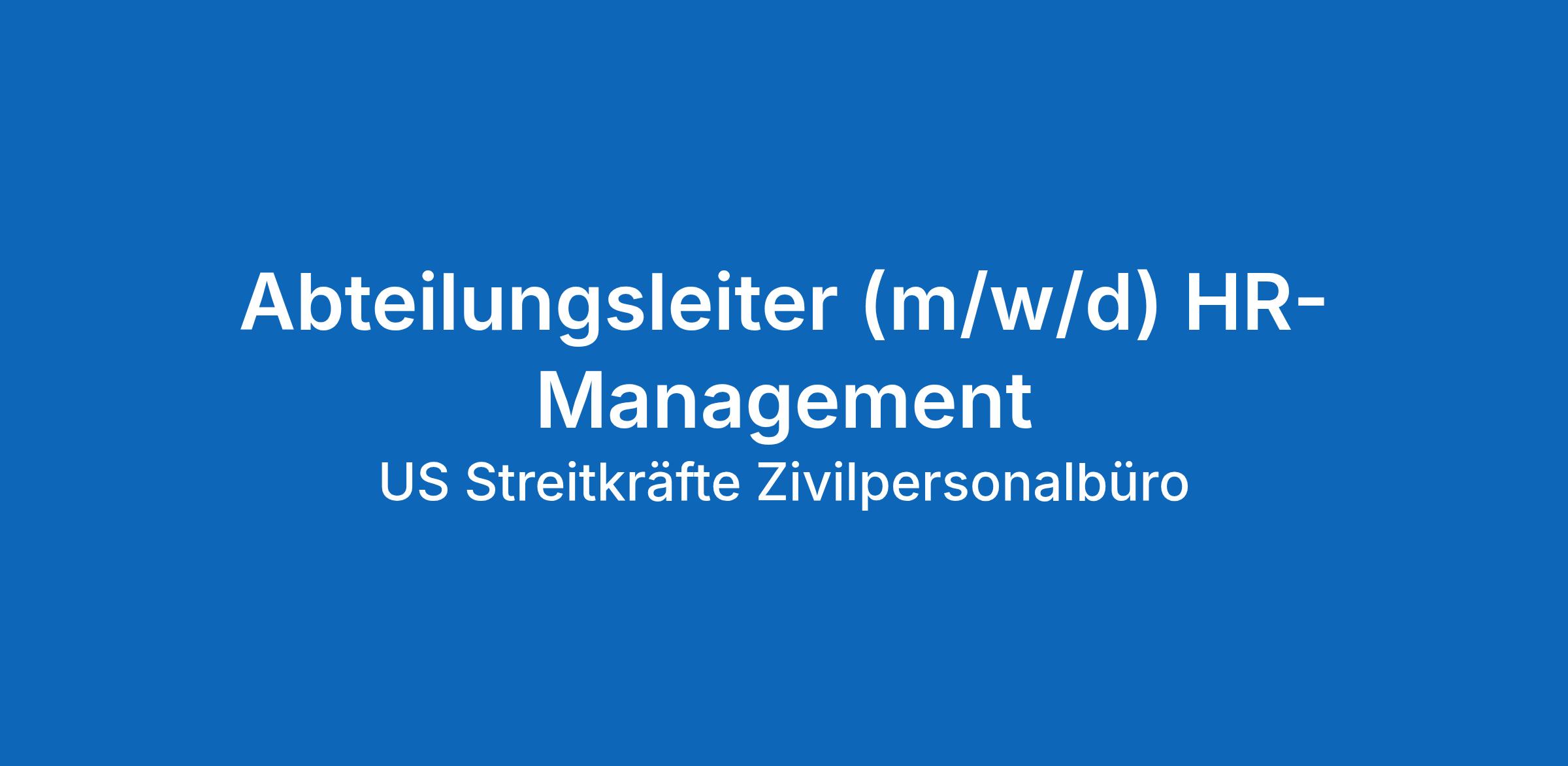 Stellenkurzbeschreibung: Leitung der Personalabteilung für den nichtamerikanischen Mitarbeiterbereich und fachliche sowie disziplinarische Führung eines ca. 12-köpfigen Personalteams, Beratung der Organisationsleitung in sämtlichen Personalangelegenheiten, fachliche Anleitung und Beratung in allen HR-Bereichen (z.B. Arbeitsrecht, Mitarbeiter-Vorgesetzten-Beziehungen, Eingruppierung, Personalpolitik)