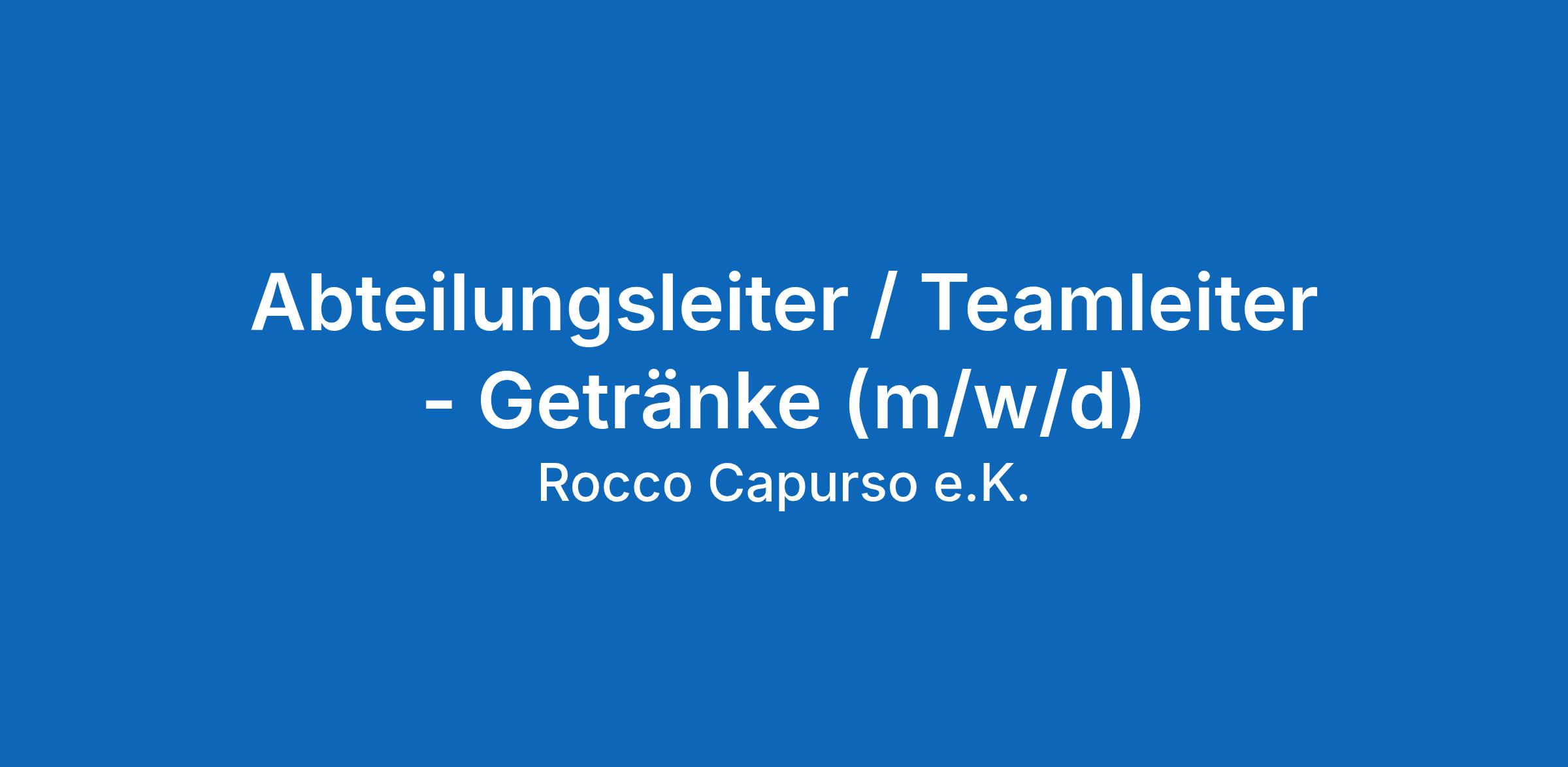 Abteilungsleiter / Teamleiter - Getränke (m/w/d)