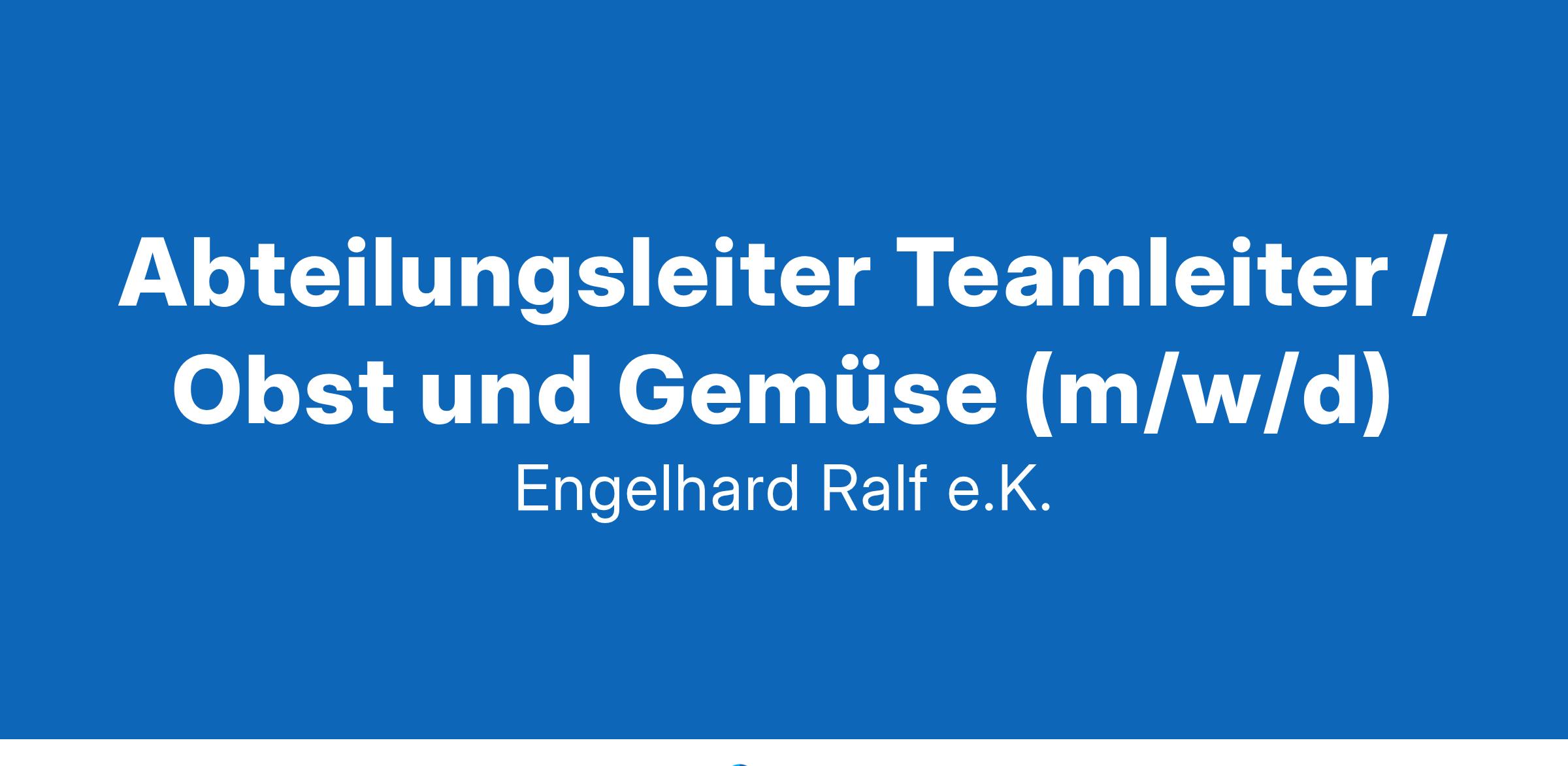 Mach was dein Herz dir sagt! EDEKA Engelhard – ein Familienunternehmen mit Herz. Unter dieser Philosophie betreiben wir unsere Märkte in Mainz-Finthen und in Ingelheim. Dass sich unsere Mitarbeiter bei uns wohlfühlen und gerne zur Arbeit kommen, hat für uns oberste Priorität. Denn nur wer liebt, was er tut, kann etwas erreichen und bewegen. Wir beschäftigen Menschen mit unterschiedlichsten Persönlichkeiten und binden diese entsprechend in unser Unternehmen ein. Dabei ist es uns wichtig, jeden Einzelnen gezielt nach seinen Stärken zu fördern. Für unseren Standort Mainz suchen wir Sie als Abteilungsleiter Teamleiter / Obst und Gemüse (m/w/d) Referenznummer: 31542 Ihre Aufgaben Bereichsverantwortung: Sie leiten eigenverantwortlich den Bereich Obst- und Gemüse und sorgen für einen reibungslosen Geschäftsablauf Verkaufsförderung: Sie gestalten die Abteilung im Hinblick auf eine ansprechende Warenpräsenz und Sauberkeit Mitarbeiterführung: Sie übernehmen die Anleitung, Koordination und Betreuung Ihres Teams Disposition: Sie führen bedarfsgerechte Bestellungen durch und vermeiden so Engpässe im Warenbestand Ihre Voraussetzungen Ausbildung: Sie haben eine abgeschlossene Ausbildung zum Verkäufer, Einzelhandelskaufmann, Koch oder Vergleichbares Erfahrungen: Sie verfügen über Erfahrung im Bereich Obst & Gemüse Führungserfahrung: Sie konnten bereits Führungserfahrung sammeln und wissen Ihr Team zu motivieren Kundenorientiertes Auftreten: Zu Ihren Stärken zählen Kreativität, Freundlichkeit und Kommunikationsfähigkeit Ihre Vorteile Sicherer Arbeitsplatz: Wir bieten Ihnen einen krisensicheren und unbefristeten Arbeitsplatz in einem erfolgreichen Unternehmen Faire Entlohnung: Wir bezahlen leistungsgerecht und attraktiv Sonderzahlungen: Wir unterstützen Sie durch vermögenswirksame Leistungen und freiwillige soziale Leistungen Mitarbeiterrabatt: Als Teil unseres Teams erhalten Sie Mitarbeiterrabatt Fitnessstudio: Wir bieten Ihnen kostenloses Training im Fitnessstudio Fort – und Weiterbildung: Wir haben ein breites Angebot an Fort – und Weiterbildungen Selbstständigkeit: Sie haben die Möglichkeit eigenverantwortlich zu handeln, Ihre Ideen einzubringen und umzusetzen Interessiert? Wir freuen uns auf Ihre Bewerbung mit Angabe Ihrer Verfügbarkeit und Gehaltsvorstellung. Aus Gründen der besseren Lesbarkeit unserer Stellenanzeigen wird auf die gleichzeitige Verwendung der Sprachformen männlich, weiblich und divers verzichtet. Sämtliche Personenbezeichnungen gelten selbstverständlich für alle Geschlechter. Ihre Ansprechperson Ralf Engelhard Mehr über EDEKA Südwest: https://karriere-edeka.de/