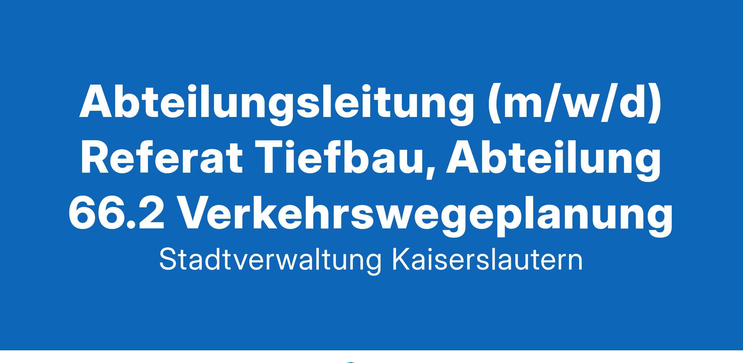 Die UNIVERSITÄTSSTADT KAISERSLAUTERN sucht für ihr Referat Tiefbau, Abteilung 66.2 Verkehrswegeplanung , zum 01.02.2025