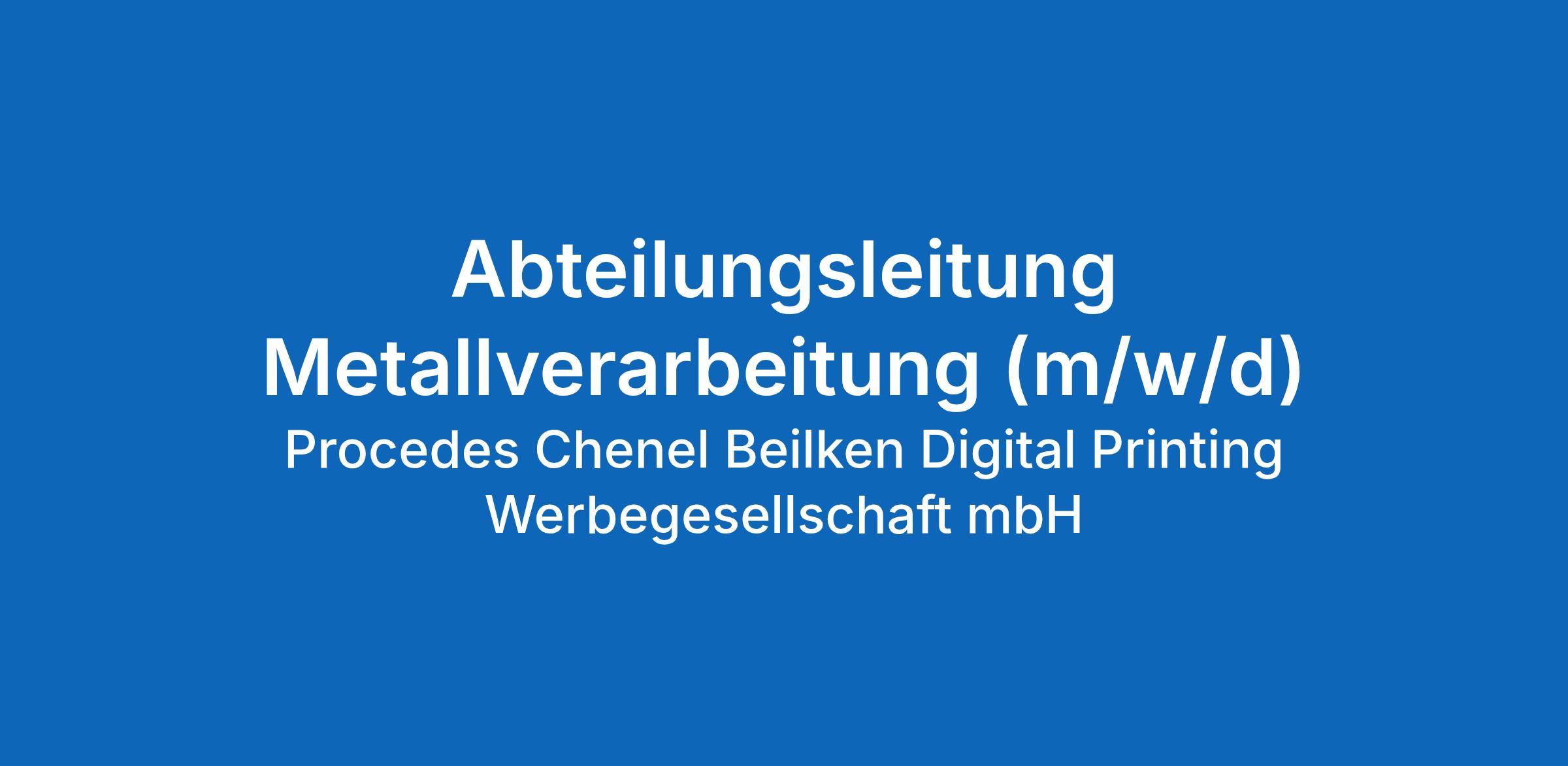 Abteilungsleitung Metallverarbeitung (m/w/d)