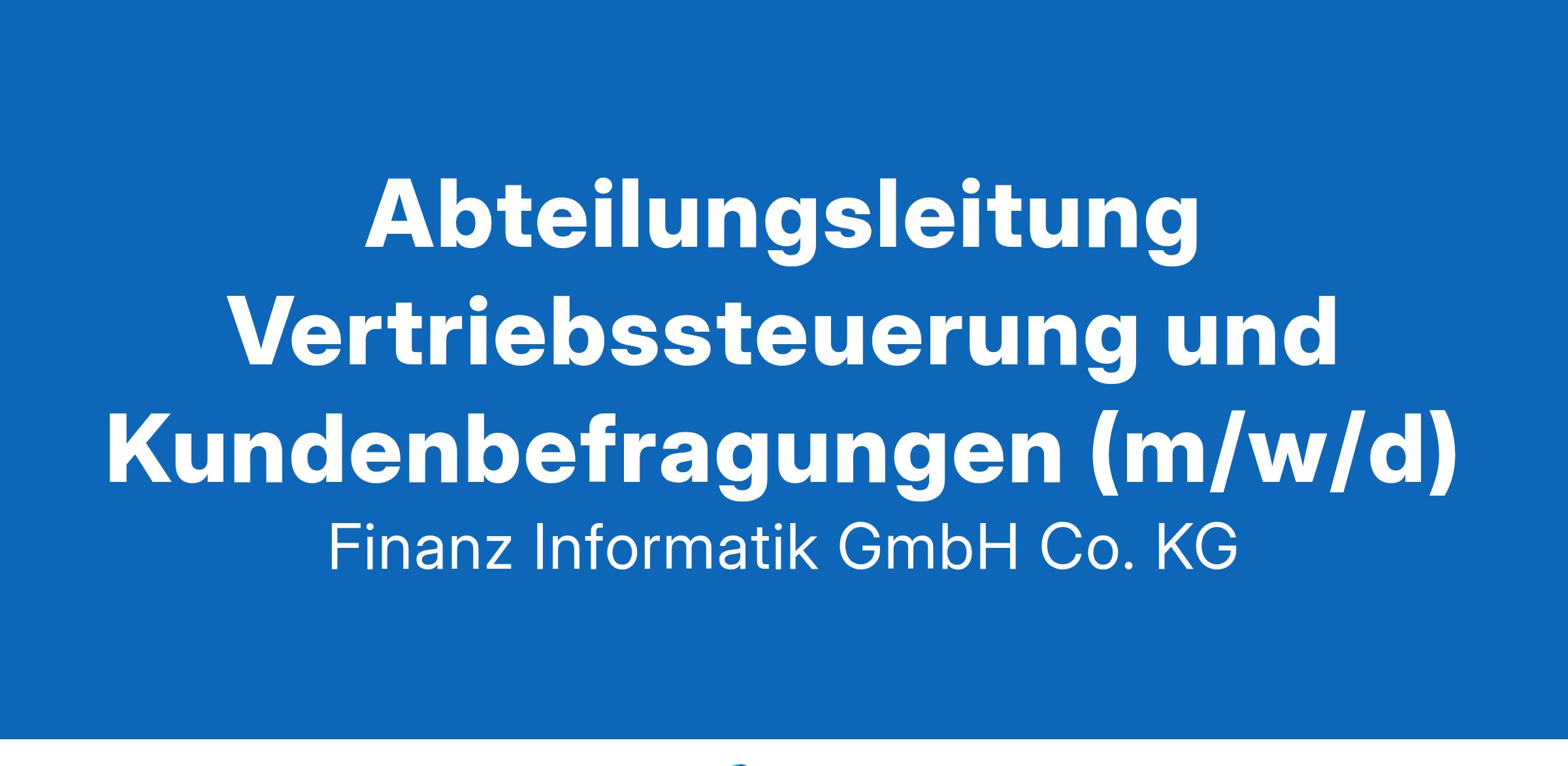 All dies sind die spannenden Aufgaben der Abteilung âVertriebsteuerung und Kundenbefragungenâ. Hierfür suchen wir zum nächstmöglichen Zeitpunkt eine motivierte und engagierte Führungskraft.