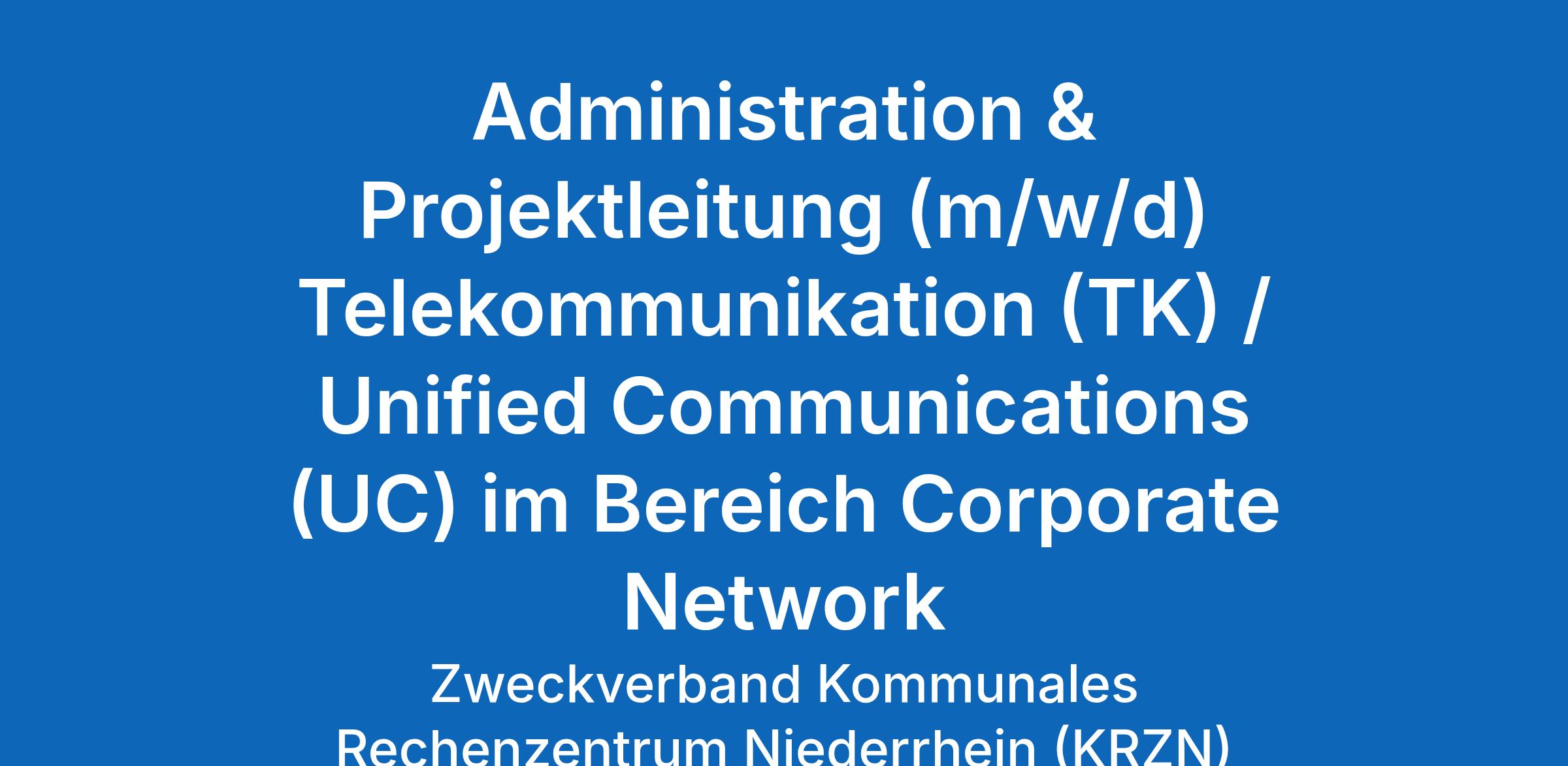 Sie werden im Service-Bereich Corporate Network als Administratorin/Administrator und Projektleiterin/Projektleiter (m/w/d) für die TK- und UC-Infrastruktur des Kreises Mettmann am Standort Mettmann und auf Wunsch zusätzlich im Home-Office eingesetzt.