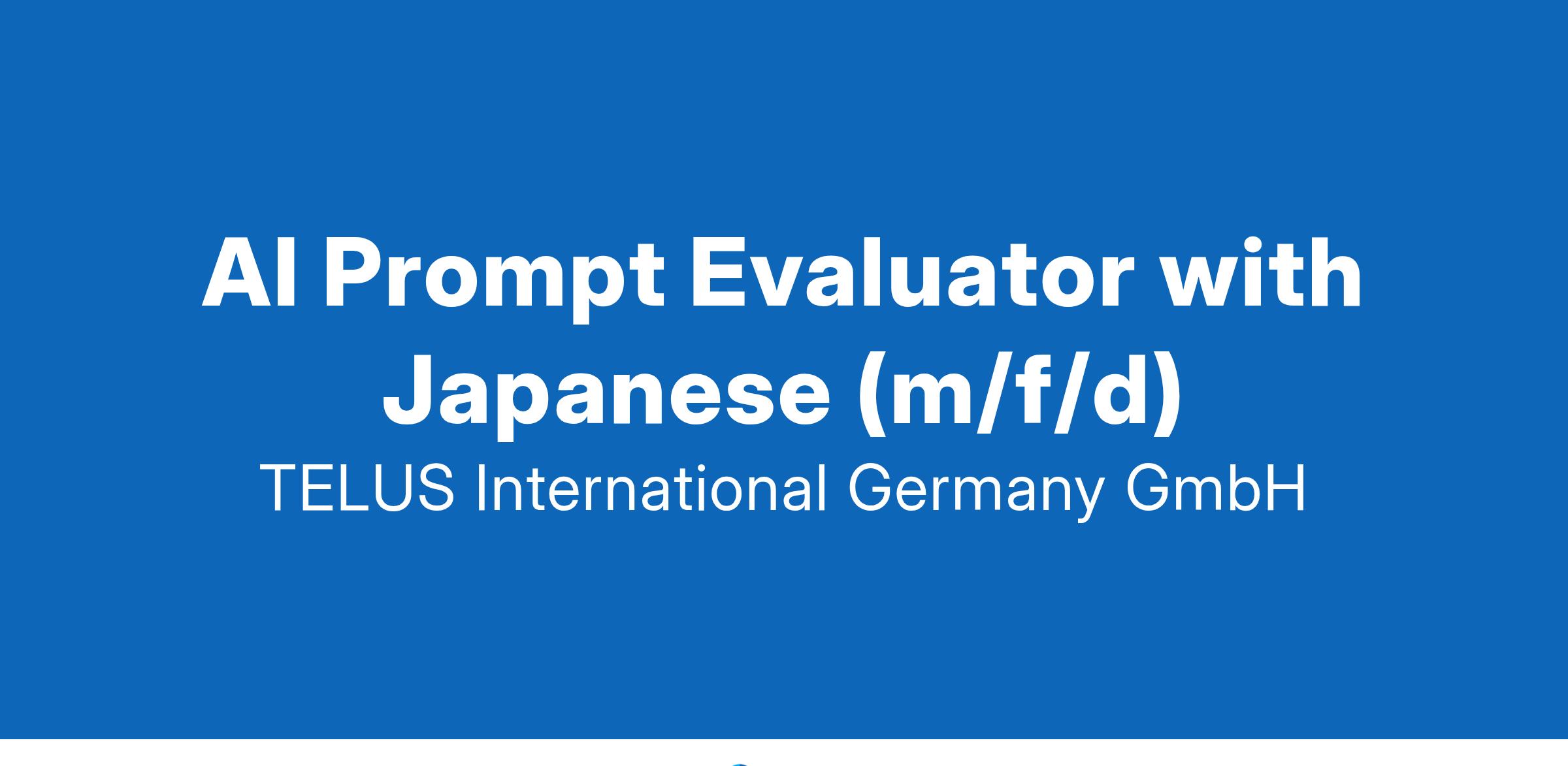 TELUS Digital AI is looking for AI Prompt Evaluators with fluency in Japanese to support the development of AI technologies on-site in our Essen office.