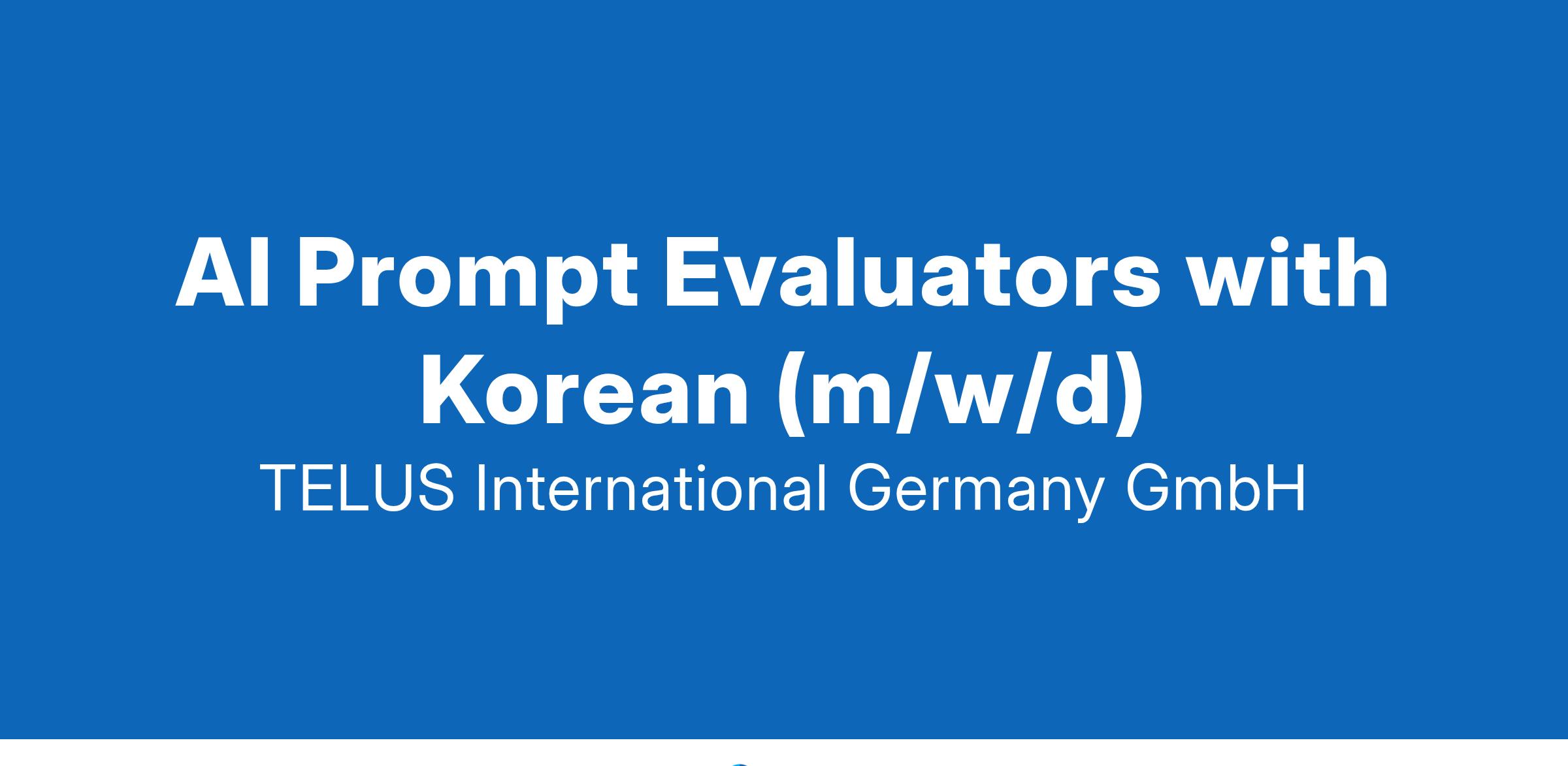AI Prompt Evaluators with Korean (m/w/d) AI Prompt Evaluators with Korean | On-site in Essen Share this job Basic Information Ref Number: Req_00144333 Country: Germany Primary Location: DE - TI Germany - DETI Work Style: On Site Description and Requirements TELUS Digital AI is looking for AI Prompt Evaluators with fluent Korean to support the development of AI technologies on-site in our Essen office. Join us in enhancing the latest speech technology applications by refining our systems in Korean. Responsibilities: Research, create, and edit short-form written prompts while ensuring factual accuracy and adherence to style guidelines for voice and creativity. Develop conversation flows to ensure smooth, logical interactions that guide users effectively. Contribute to the improvement of our speech system, which may involve working with dialogues on various topics, including controversial subjects. Analyse and evaluate short-form written content for factual correctness and compliance with style guidelines. Generate and assess suggested prompts and responses. Ensure that the tone aligns with the proper voice and resonates with the target audience. What we offer: Special winter welcome bonus of €1,200 for all full-time hires in January 2025 Relocation support available A competitive salary (starting from €20 per hour) Working as part of a dynamic and multicultural team, with flat hierarchies and a first-name workplace culture Advanced job opportunities in our internationally growing company Great office at the city center of Essen Positive international working environment Fun Floor with PlayStation, table tennis, and much more Comfortable leisure areas and opportunities to join different activities like yoga or guided meditation Appealing benefits in the office, regular fruit deliveries for a healthy lifestyle, and free drinks Attractive employee referral bonus programs Intriguing and diverse responsibilities What we expect: You must hold a valid work permit for Germany Ability to work on-site in our Essen office Fluency in Korean and minimum B2 proficiency in English Strong command of language, grammar, and style to create engaging and clear prompts. Ability to come up with innovative prompts and scenarios that engage users. Ability to analyze user data and feedback to improve prompts and conversation flows. Ability to work independently with minimal supervision. Strong attention to detail and effective communication skills. Ability to convey complex ideas simply and effectively. Comfort with potentially sensitive content. Ready to make an impact on AI technologies? If this opportunity sounds appealing to you, apply now! Kindly attach your CV in English. *Please note that only shortlisted candidates will be contacted. For any queries, feel free to reach out to tine.sourcing.box@telusdigital.com About TELUS Digital AI Data Solutions Creating and enhancing the world's data to enable better AI via human intelligence. We strive to enhance the world's data to enable better AI through human intelligence. Our team of data, technology, and project management professionals work with companies to test and improve machine learning models. We handle various data types, including text, images, audio, video, and geo. Our solutions improve AI systems in multiple applications, such as advanced smart products, improved search results, expanded speech recognition, more human-like bot interactions, and more. TELUS Digital values diversity and grants equal opportunity regardless of age, civil status, disability, gender, nationality, race, religion and political beliefs, sex or sexual orientation. #LI-DNI Additional Job Description TELUS Digital AI is looking for AI Prompt Evaluators with fluent Korean to support the development of AI technologies. Join us in enhancing the latest speech technology applications by refining our systems in Korean. EEO Statement At TELUS Digital, we enable customer experience innovation through spirited teamwork, agile thinking, and a caring culture that puts customers first. TELUS Digital is the global arm of TELUS Corporation, one of the largest telecommunications service providers in Canada. We deliver contact center and business process outsourcing (BPO) solutions to some of the world's largest corporations in the consumer electronics, finance, telecommunications and utilities sectors. With global call center delivery capabilities, our multi-shore, multi-language programs offer safe, secure infrastructure, value-based pricing, skills-based resources and exceptional customer service - all backed by TELUS, our multi-billion dollar telecommunications parent. Equal Opportunity Employer At TELUS Digital, we are proud to be an equal opportunity employer and are committed to creating a diverse and inclusive workplace. All aspects of employment, including the decision to hire and promote, are based on applicants’ qualifications, merits, competence and performance without regard to any characteristic related to diversity.