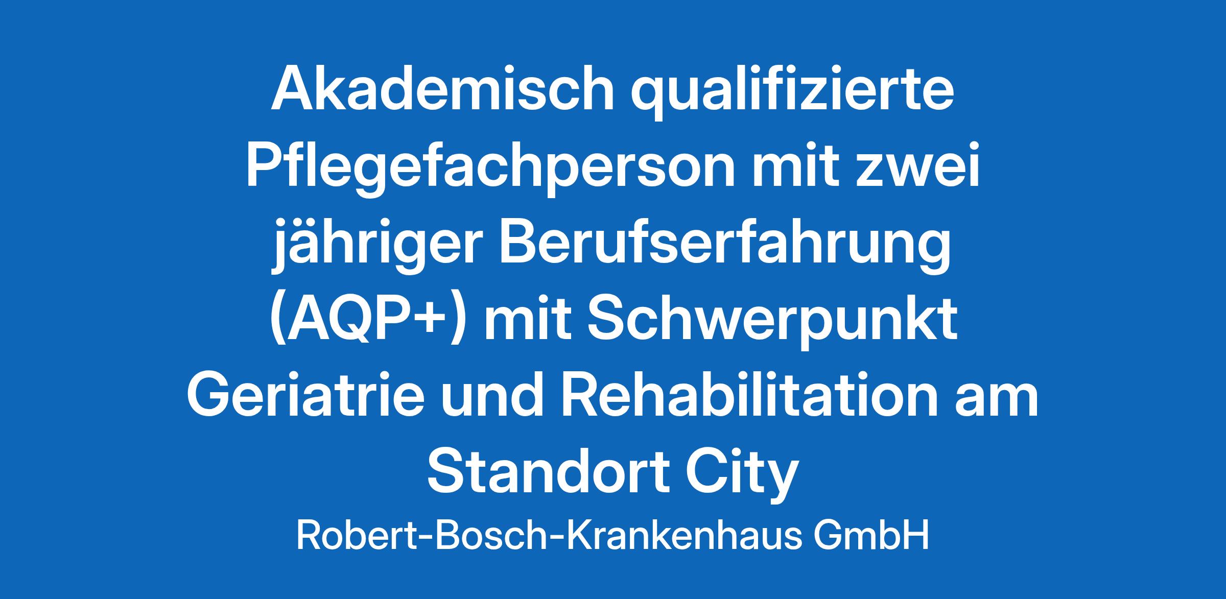Akademisch qualifizierte Pflegefachperson mit zwei jähriger Berufserfahrung (AQP+) mit Schwerpunkt Geriatrie und Rehabilitation am Standort City