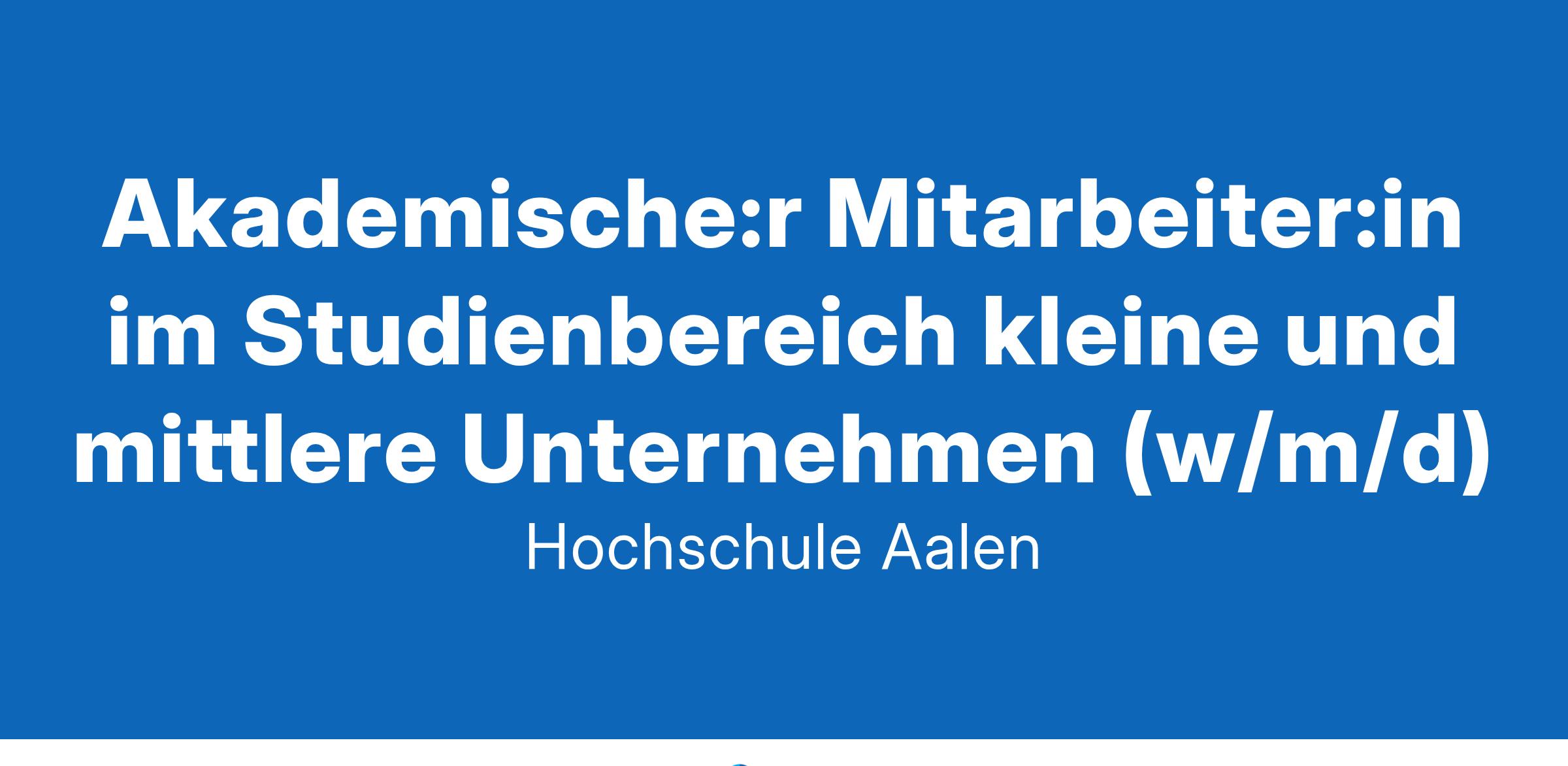 Die Hochschule Aalen sucht im Studienbereich KMU der Fakultät Wirtschaftswissenschaften für die Studienangebote KMU (Bachelor) und MMM (Master Mittelstandsmanagement) zum nächstmöglichen Zeitpunkt eine:n