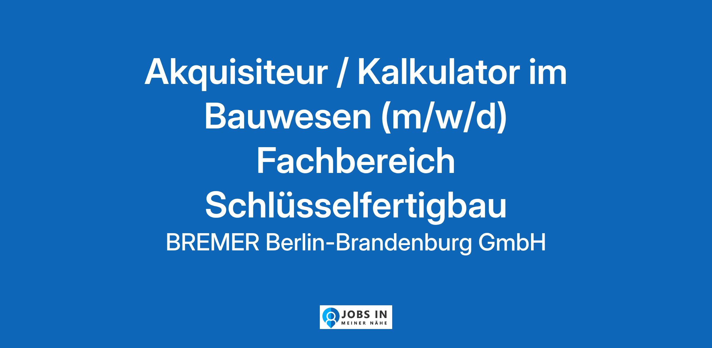 Als Akquisiteur und Kalkulator (m/w/d) im Bereich Schlüsselfertigbau spielen Sie eine entscheidende Rolle in unserem Unternehmen. Ihre Fähigkeiten und Ihr Engagement sind von zentraler Bedeutung, um die Rentabilität unserer Projekte sicherzustellen und unseren Kunden qualitativ hochwertige Lösungen zu bieten. Darüber hinaus trägt Ihre Expertise dazu bei, nicht nur Bauprojekte umzusetzen, sondern auch langfristige Partnerschaften aufzubauen.