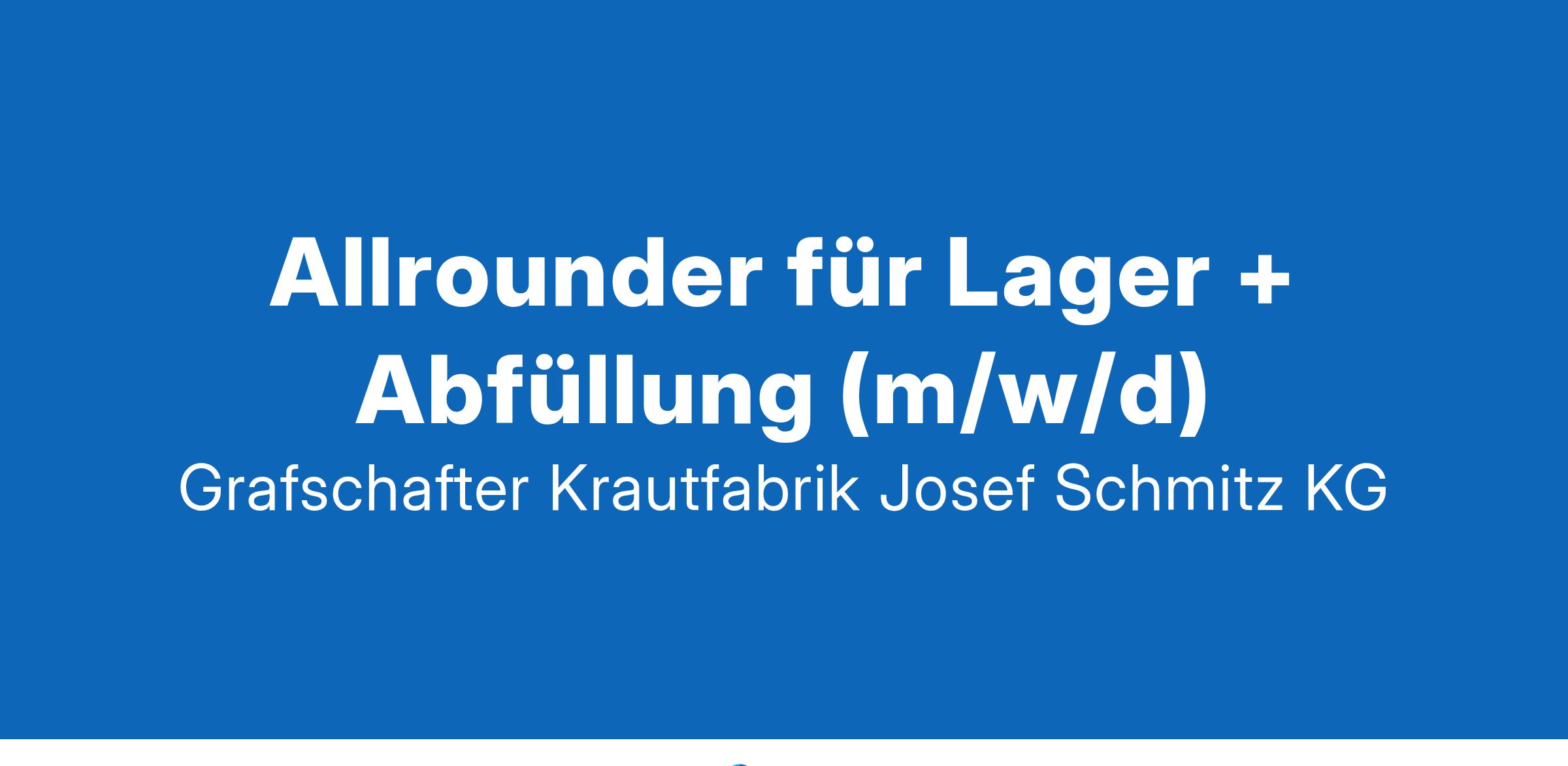 Grafschafter Krautfabrik Josef Schmitz KG sucht ab Juli 2025 einen motivierten und engagierten Allrounder für Lager + Abfüllung (m/w/d) Ihre Aufgaben sind: Kommissionierung unserer Produkte nach Lieferschein, von vollen LKWs bis zur Zusammenstellung gemischter Stückgutpaletten Transport von Paletten mit Hubameise aus der Abfüllung an den entsprechenden Stellplatz im Lager Zuführung von Verpackungsmaterial oder Leerpaletten an unsere Abfülllinien Beladung von LKWs mit losegeschütteten Äpfeln und Birnen Abfüllung unsere leckeren Produkte in Eimer, Kanister und Container Reinigung von Containern in unserer eigenen Waschstraße Mitarbeit bei Inventuren Was Sie mitbringen: Allrounder, der gerne anpackt und Dinge bewegt Gerne eine Ausbildung aus dem Bereich Lagerlogistik, Lebensmitteltechnik oder vergleichbar Gutes Zahlenverständnis setzen wir voraus, sowie sehr gute Deutschkenntnisse in Wort und Schrift Erste EDV-Kenntnisse, vor allem im Umgang mit Hand-Scannern, sind wünschenswert Erfahrung in der Beladung von LKWs mit Schüttgütern einen gültigen Flurförderschein und Gabelstaplerschein hohe Belastbarkeit und Spaß bei der Mitarbeit in einem leistungsfähigen Team Was wir Ihnen bieten: Profitieren Sie von den Vorteilen eines familiengeführten Unternehmens. Wir bezahlen nach Tarifvertrag. Sie haben eine geregelte 38-Stundenwoche im Schichtsystem mit Früh- und Spätschicht von Montag bis Freitag. Ein dreizehntes Monatsgehalt plus Urlaubsgeld gibt es auch noch und Sie haben 30 Urlaubstage im Jahr. Schicken Sie bitte Ihre Bewerbungsunterlagen an: Grafschafter Krautfabrik Josef Schmitz KG Postfach 1168 53333 Meckenheim oder Karriere@grafschafter.de nur als ein PDF-Dokument Wir freuen uns auf Sie!
