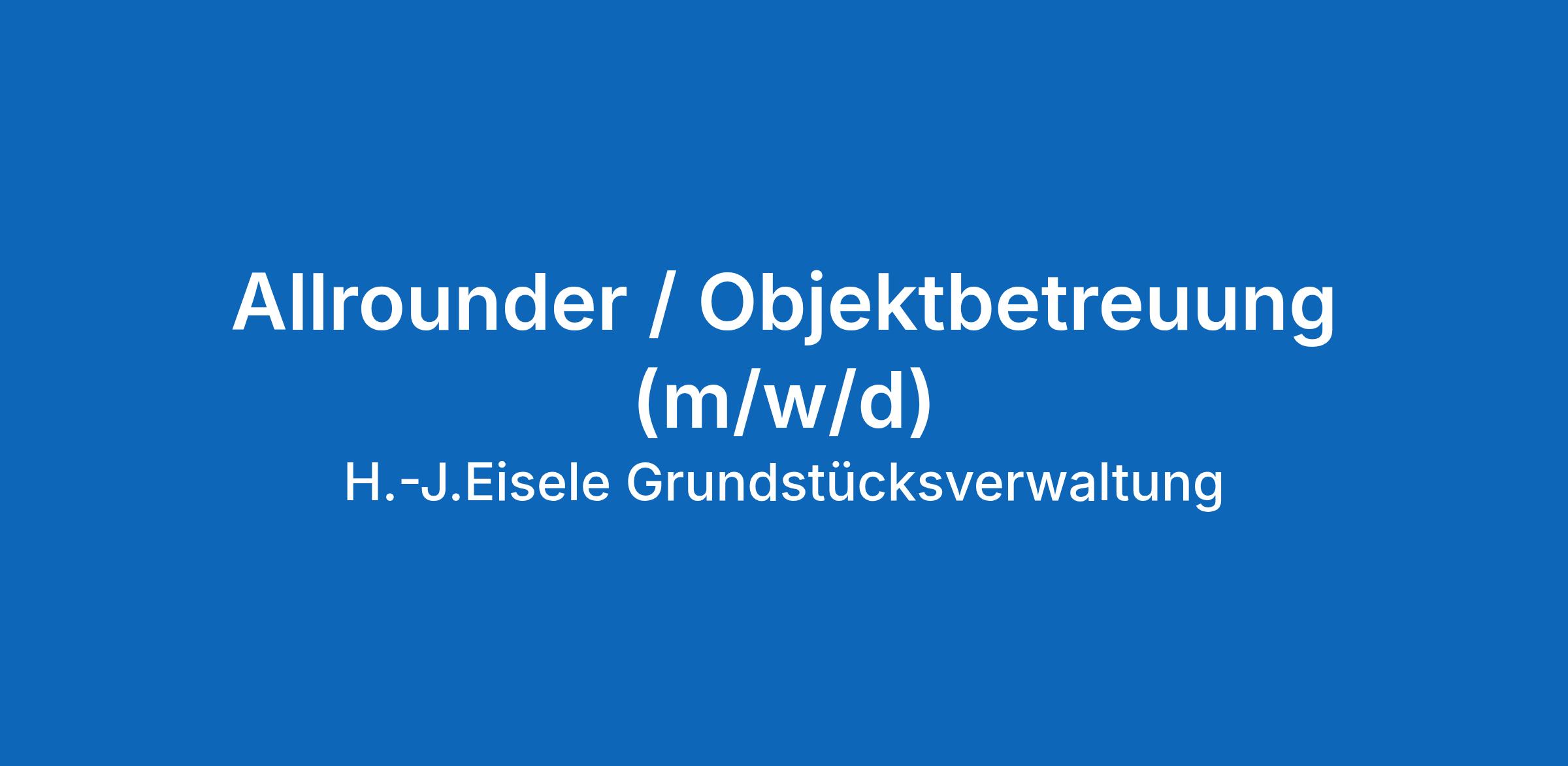 Ein kleines, wachsendes Immobilienunternehmen sucht engagierten Allrounder zur Verstärkung im Bereich Objektbetreuung in Vollzeit. ( Mo-Fr, seltenste am Samstag)