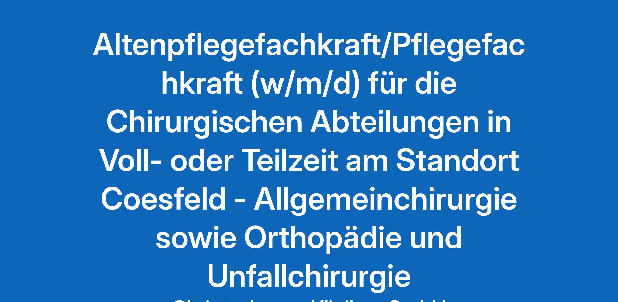 Altenpflegefachkraft/Pflegefachkraft (w/m/d) für die Chirurgischen Abteilungen in Voll- oder Teilzeit am Standort Coesfeld - Allgemeinchirurgie sowie Orthopädie und Unfallchirurgie