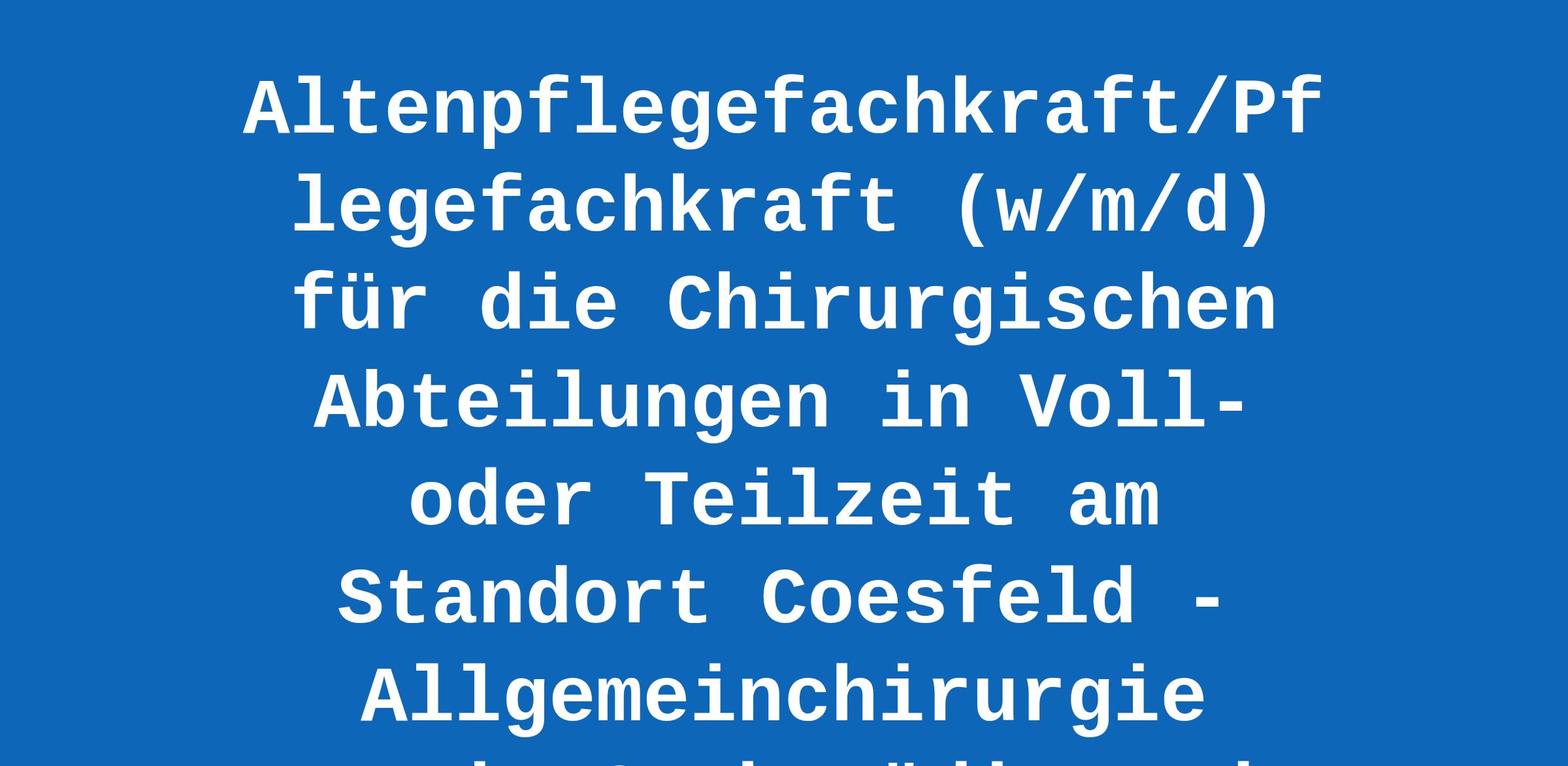 Altenpflegefachkraft/Pflegefachkraft (w/m/d) für die Chirurgischen Abteilungen in Voll- oder Teilzeit am Standort Coesfeld - Allgemeinchirurgie sowie Orthopädie und Unfallchirurgie