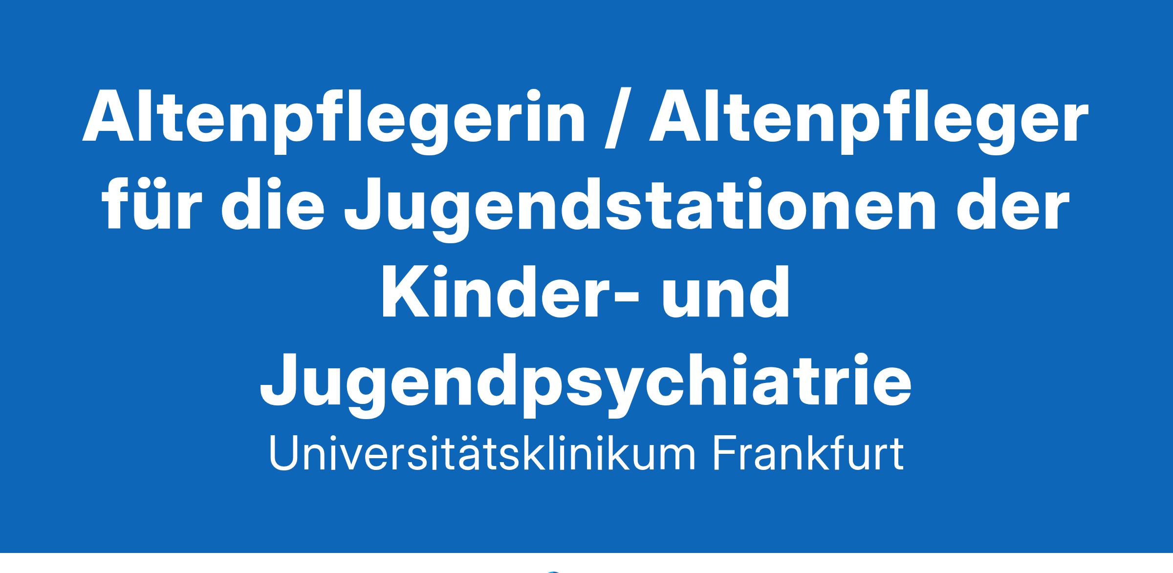 »Aus Wissen wird Gesundheit« - wir füllen dieses Motto tagtäglich mit Leben, entwickeln neue Ideen und Altbewährtes weiter. Das Universitätsklinikum Frankfurt besteht seit 1914 und unsere rund 7.400 Beschäftigte bringen sich mit ihrem Können und Wissen an den 33 Fachkliniken, klinisch theoretischen Instituten und in den Verwaltungsbereichen ein. Die enge Verbindung von Krankenversorgung mit Forschung und Lehre sowie ein Klima der Kollegialität, Internationalität und berufsgruppenübergreifender Zusammenarbeit zeichnen das Universitätsklinikum aus.Altenpflegerin / Altenpfleger für die Jugendstationen der Kinder- und Jugendpsychiatrie(wir richten uns mit dieser Ausschreibung an Bewerbende jeden Geschlechts)