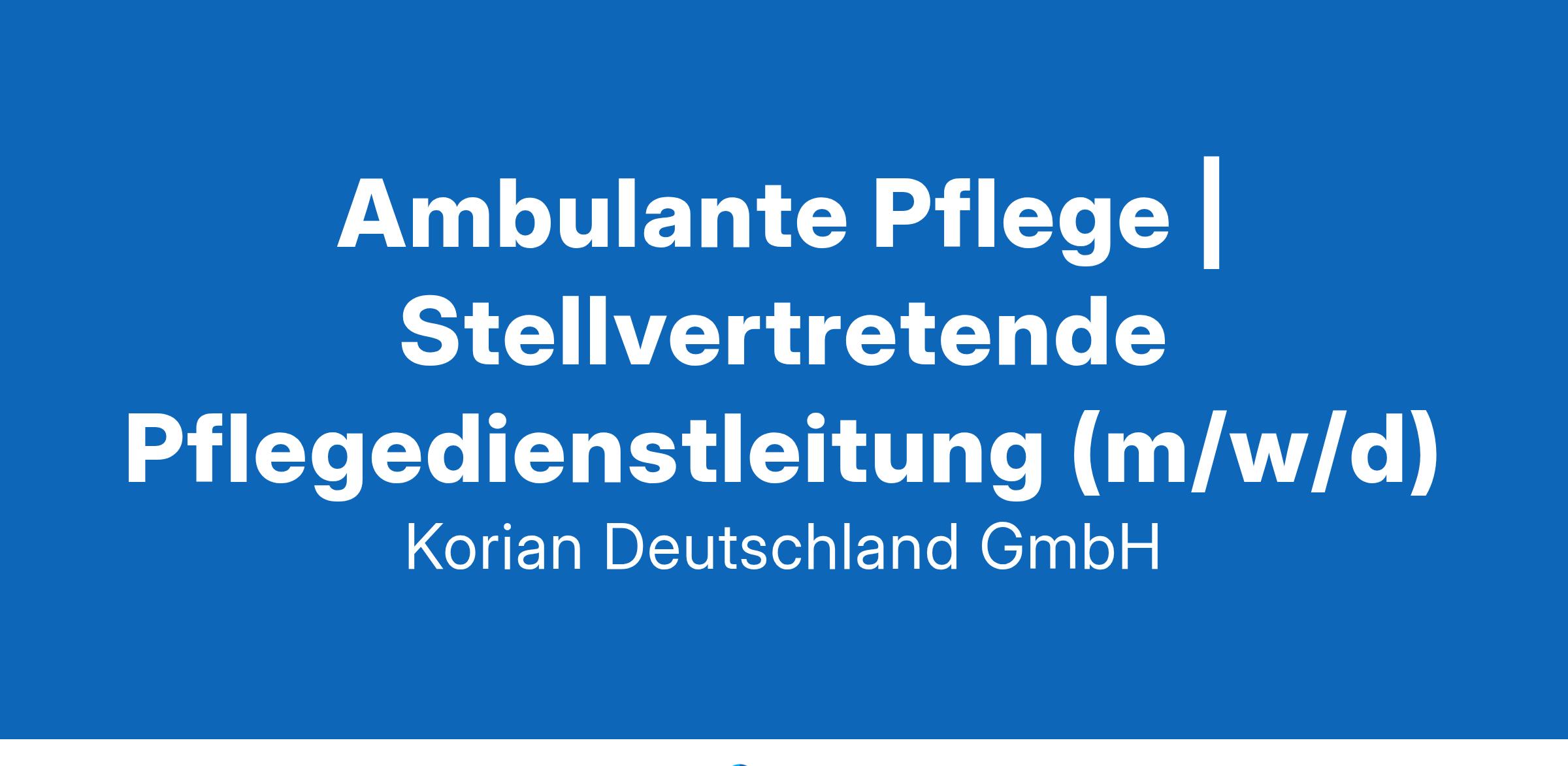 Unser Stellenangebot für stellvertretende Pflegedienstleiter:innen im ambulanten Dienst (w/m/d)Unser Stellenangebot für stellv. PDL in der ambulanten Pflege beginnt mit einem Versprechen: Korian steht für Pflege, die Maßstäbe setzt. Weil unsere Kund:innen nur das Beste verdient haben, suchen wir Dich als stellvertretende Pflegedienstleitung in der ambulanten Pflege (w/m/d) für Korian.Deine Aufgaben als stellv. Pflegedienstleiter:in ambulant (w/m/d) bei unsAls stellvertretende Leitung Deines Teams verkörperst Du unsere Werte gegenüber unseren Kund:innen sowie Mitarbeiter:innen. Korian steht für Pflege mit Herz, und Du bist der Beweis dafür.