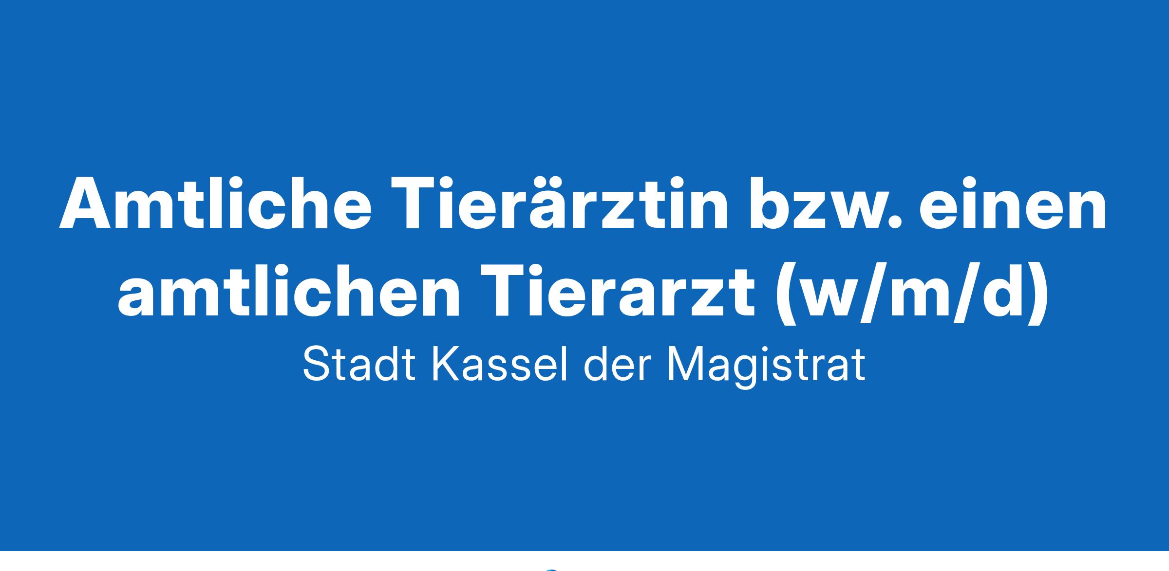 einen amtlichen Tierarzt (w/m/d) Ihr Profil: Tierärztliche Approbation Fach- und Rechtskenntnisse in allen amtstierärztlichen Aufgabengebieten Haben wir Ihr Interesse geweckt? Die vollständige Ausschreibung finden Sie auf www.kassel.de im Bereich Stellenangebote oder im aktuellen Amtsblatt. Bewerbungsschluss: 19. Januar 2025