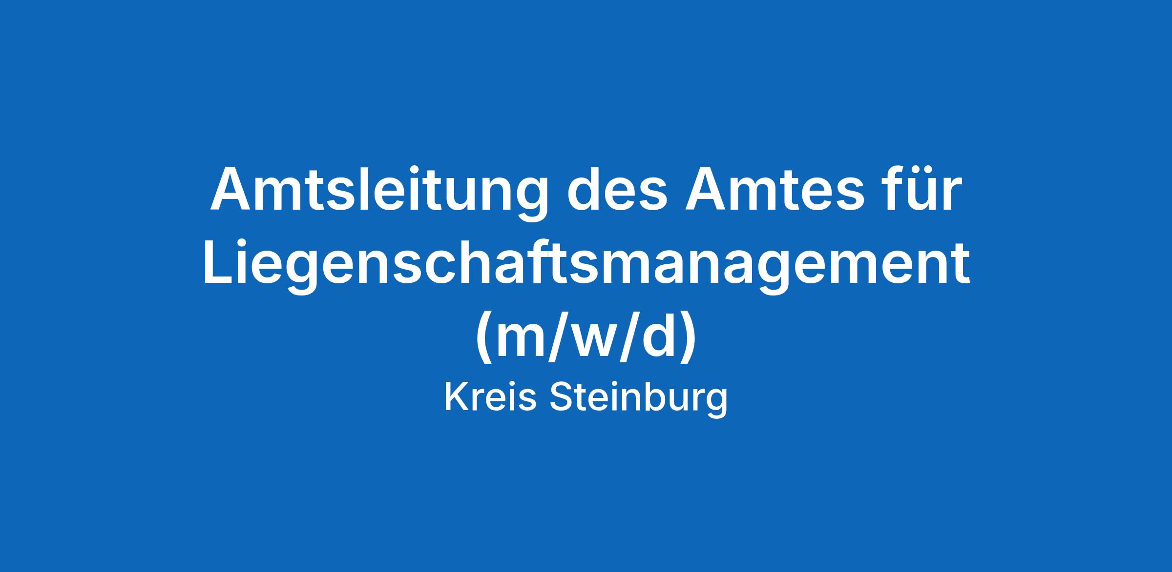 Der Kreis Steinburg bietet Ihnen spannende Herausforderungen und die Chance sich in einer modernen, zukunftsorientierten und bürgernahen Verwaltung aktiv einzubringen. Als Amtsleitung übernehmen Sie eine verantwortungsvolle Schlüsselposition, in der Sie die strategische und operative Weiterentwicklung zentraler Aufgabenbereiche gestalten. Das Amt für Liegenschaftsmanagement befindet sich gegenwärtig im Aufbau, sodass Sie dessen Struktur, Prozesse und Ausrichtung maßgeblich mitgestalten und prägen können.