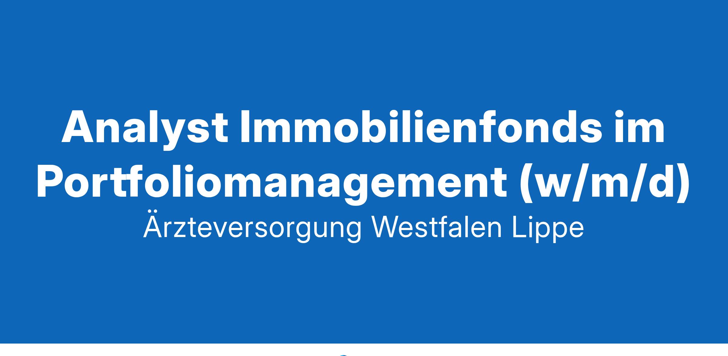 in MünsterHier sind Ihre Fähigkeiten gefragtAls elementares Mitglied des Portfoliomanagement Teams sind Sie für das Controlling und Monitoring der Fonds und Beteiligungen, die Erstellung und Weiterentwicklung von Portfolioauswertungen, Analysen und regelmäßigen datenbankunterstützten Reports sowie Optimierung von Investment- und Risikomanagementprozessen zuständig. In diesem Rahmen verantworten Sie das Immobilienmanagement sowie das Nachhaltigkeitsreporting. Im Team optimieren Sie den Informationsfluss zwischen nationalen und internationalen externen Dienstleistern und dem Versorgungswerk und stellen die Berichte den Portfoliomanagern und dem Senior Management zur Verfügung. Darüber hinaus entwickeln Sie in einem unternehmerisch geprägten Umfeld das Daten Management kontinuierlich weiter und setzen zur Durchführung eigenständig Projekte auf und um.Das bringen Sie mitSie verfügen über ein erfolgreich abgeschlossenes wirtschaftswissenschaftliches Hochschulstudium (Bachelor oder Master) und/oder eine entsprechende Ausbildung. Außerdem bringen Sie einschlägige Erfahrungen im Controlling und Berichtswesens für Investoren, Kapitalverwaltungsgesellschaften, Beratungsunternehmen, Wirtschaftsprüfungsgesellschaften oder Banken mit. Darüber hinaus haben Sie ein ausgeprägtes Interesse an der Assetklasse Immobilien und dokumentieren dies über Ihre akademische bzw. berufliche Erfahrung. Abgerundet wird ihr Profil durch ein hervorragendes analytisches und strategisches Denkvermögen, eine starke IT-Affinität, Teamfähigkeit und eine hohe Leistungsmotivation.Unser Angebot für SieProfitieren Sie von einem krisensicheren, unbefristeten und vielseitigen Arbeitsplatz am Stadthafen von Münster mit einem attraktiven Gehaltspaket nach Tarifvertrag (TV-L) sowie einer betrieblichen Altersversorgung. Es erwartet Sie außerdem eine offene Arbeitsatmosphäre mit kurzen Entscheidungswegen in einem bodenständigen und zugleich modernen Verwaltungsbetrieb. Mit flexiblen Arbeitszeiten inklusive Zeiterfassung sowie der Möglichkeit zum mobilen Arbeiten legen wir das Fundament für die optimale Vereinbarkeit von Arbeit und Privatleben. Darüber hinaus können Sie sich auf viele weitere Zusatzleistungen freuen, wie z.B. Weiterbildungsangebote, Jobrad, Essensgeldzuschuss sowie ein betriebliches Gesundheitsmanagement.Überzeugt? Dann freuen wir uns auf Ihre Bewerbung.Senden Sie uns Ihre Bewerbungsunterlagen – inklusive Ihrer Gehaltsvorstellung und Ihres gewünschten Eintrittstermins – bis zum 21.02.2025 idealerweise als eine PDF per E-Mail. Bei Fragen wenden Sie sich gerne an unseren Abteilungsleiter Kapitalanlage Immobilien, Herrn Huesmann. Wir freuen uns auf ein Kennenlernen!ONLINE BEWERBEN!Ärzteversorgung Westfalen-Lippe