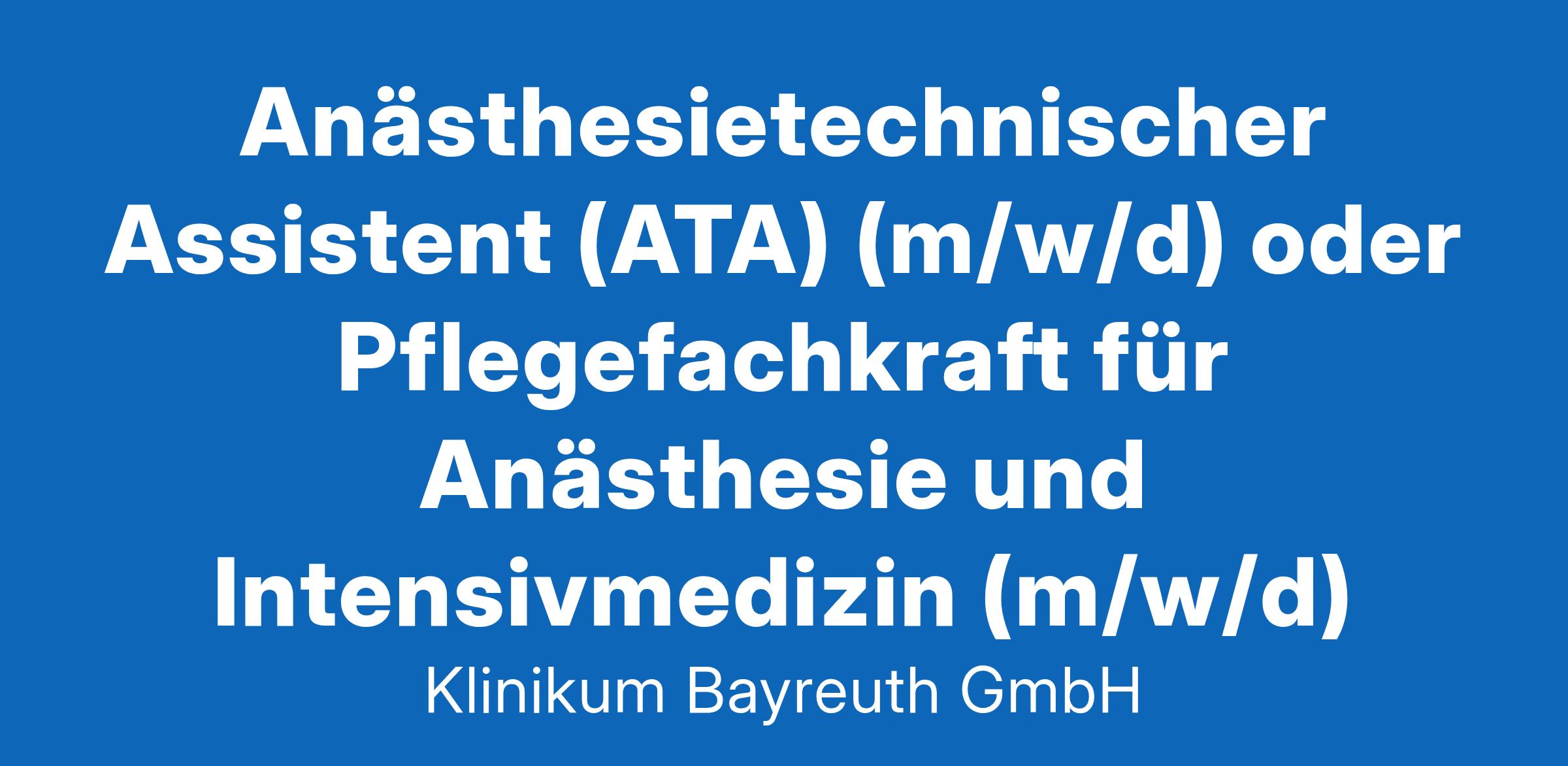 Anästhesietechnischer Assistent (ATA) (m/w/d) oder Pflegefachkraft für Anästhesie und Intensivmedizin (m/w/d)