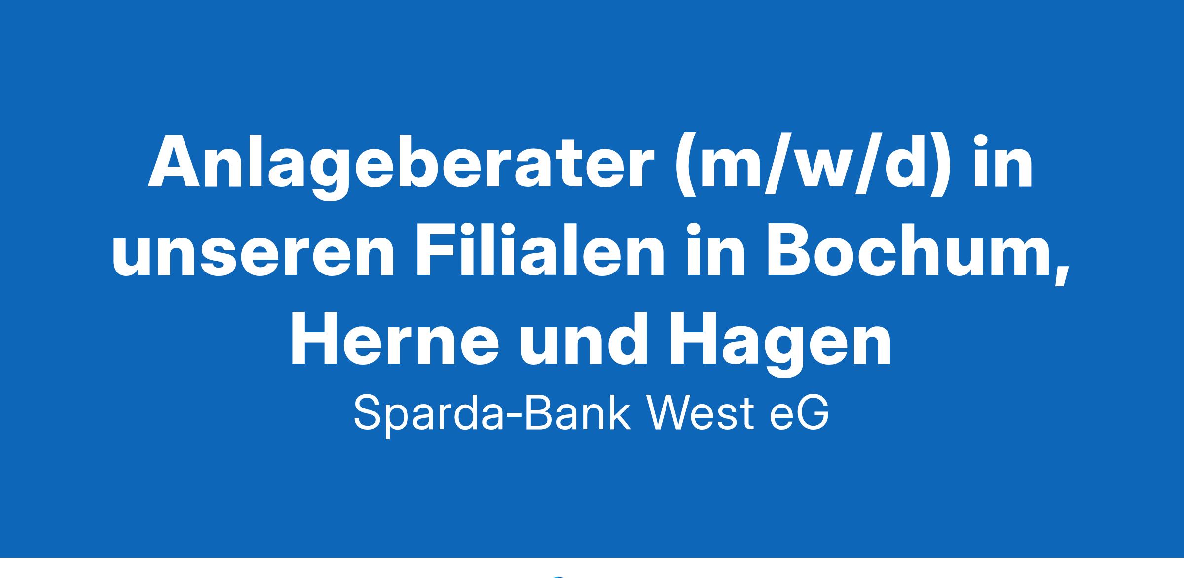 Anlageberater (m/w/d) in unseren Filialen in Bochum, Herne und Hagen Wir suchen Dich für unser Team als Orientierungsstifter (m/w/d) im Bereich Finanzen. Gemeinsam sind wir mehr als eine Bank Mit Fairness, Leistung und Sympathie sind unsere Mitarbeiter gemeinsam erfolgreich – und unsere Kunden zufrieden.