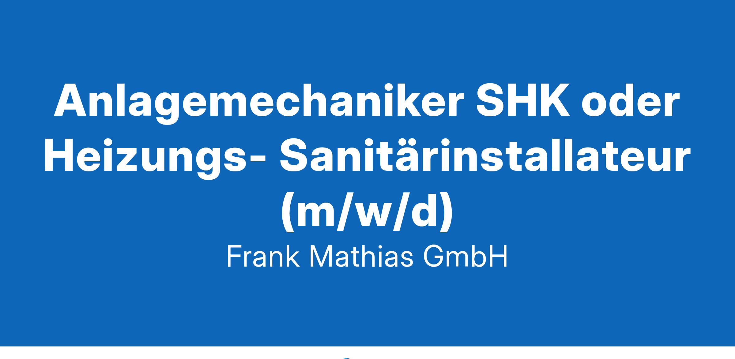 Wir suchen ab sofort zur Verstärkung unseres Kundendienst-Teams in Waltershausen Anlagemechaniker SHK oder Heizungs- Sanitärinstallateur (m/w/d) für die Freundlichkeit & Herzlichkeit sowie Teamgeist und Freude am Beruf an oberster Stelle stehen. Gesucht werden vorzugsweise selbständig arbeitenden Fachkräfte, die in ihrem Beruf gerne arbeiten und den Kontakt zu unseren Kunden nicht scheuen. DAS BIETEN WIR IHNEN Anstellung in ein unbefristetes Arbeitsverhältnis leistungsgerechte übertariflich Bezahlung flexible Arbeitszeiten einen sicheren Arbeitsplatz sehr gute Sozialleistungen kommunikatives Netzwerk aller Kollegen untereinander Stellung hochwertiger Werkzeuge, Messgeräte, Diensttelefon und Arbeitskleidung sehr gute Entwicklungsmöglichkeiten sowie Anerkennung und Vertrauen Familiäre Arbeitsatmosphäre in einem erfolgreichen, wachstumsorientierten Unternehmen Tablet und Telefon Keine Montagetätigkeiten Firmen Fahrzeug Job Rad DAS WÜNSCHEN WIR UNS VON IHNEN Spaß an der Arbeit und liebe zum Beruf Teamgeist Abgeschlossene Ausbildung zum Anlagenmechaniker für Sanitär-, Heizungs- und Klimatechnik, Gas- und Wasserinstallateur, Zentralheizungs- und Lüftungsbauer oder eine vergleichbare Qualifikation Bitte senden Sie Ihre Bewerbungsunterlagen bevorzugt per E-Mail an nachfolgende Adresse : Frank Mathias Gmbh Fröttstädter Weg 9A 99880 Waltershausen d.mathias@mathiasgmbh.de