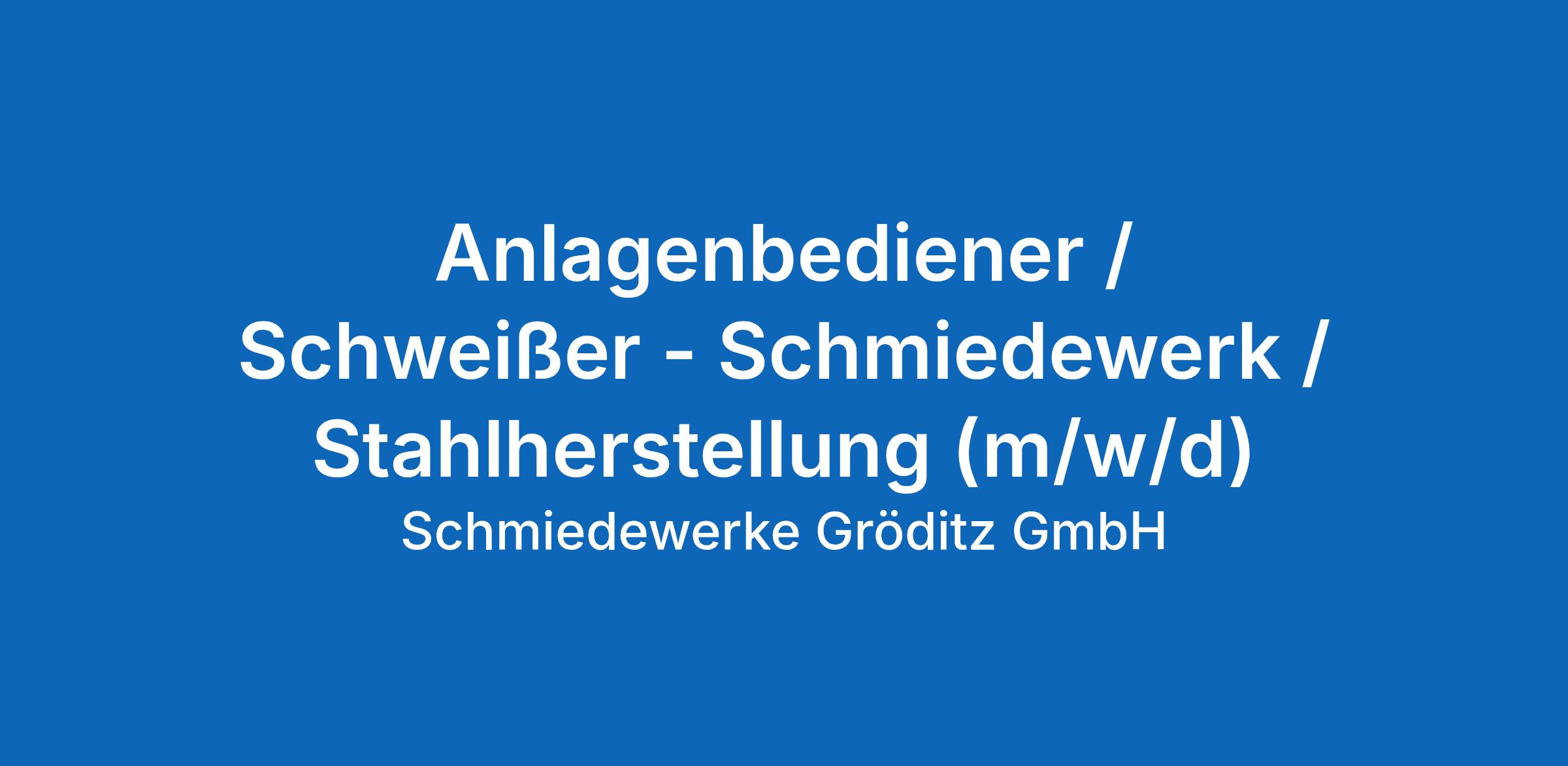 Anlagenbediener / Schweißer – Schmiedewerk / Stahlherstellung (m/w/d)