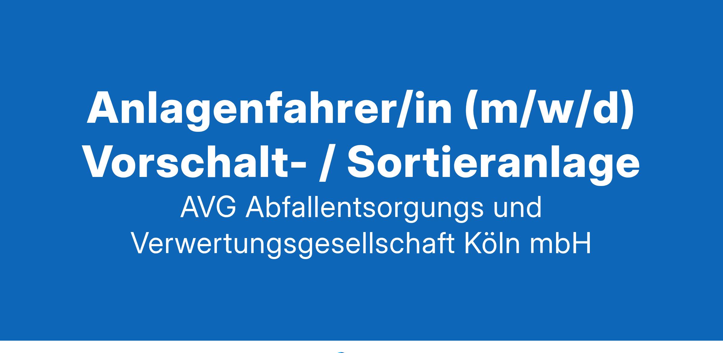 Für die Vorschalt- / Sortieranlage der Restmüllverbrennungsanlage der AVG Köln mbH suchen wir für den Standort Köln Niehl ab sofort einen Anlagenfahrer (m/w/d) .