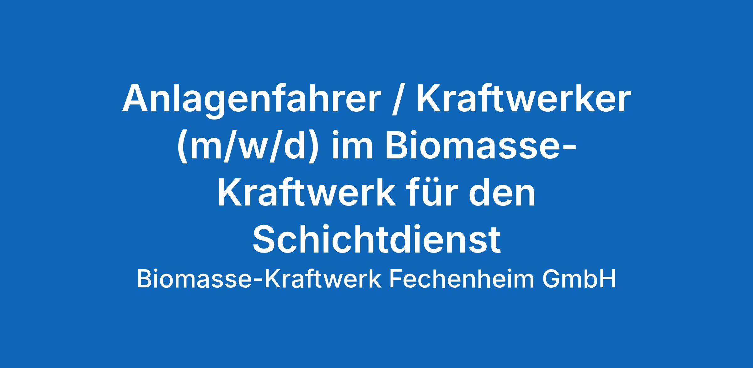 Anlagenfahrer / Kraftwerker (m/w/d)