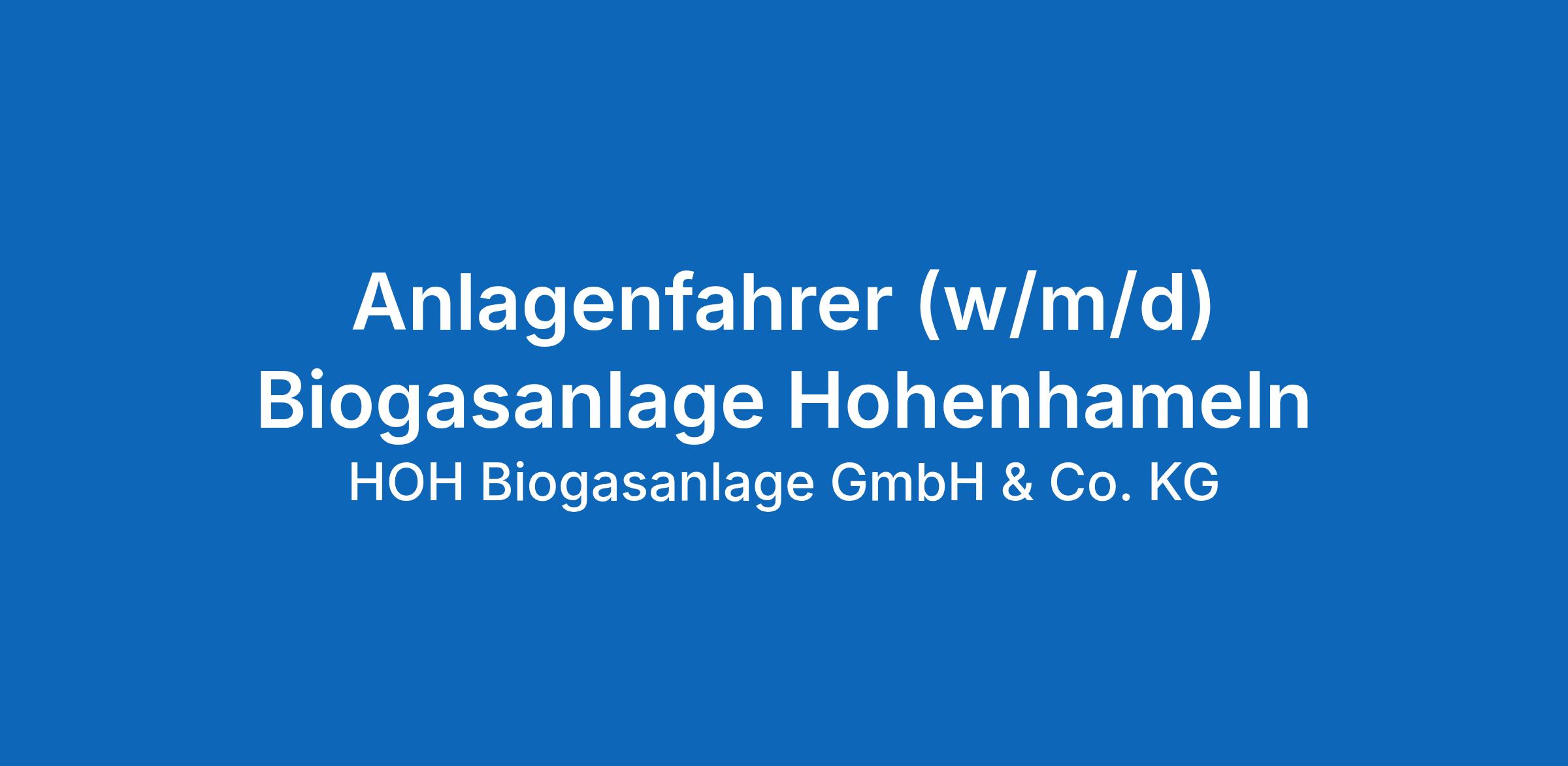 Anlagenfahrer (w/m/d) Biogasanlage Hohenhameln