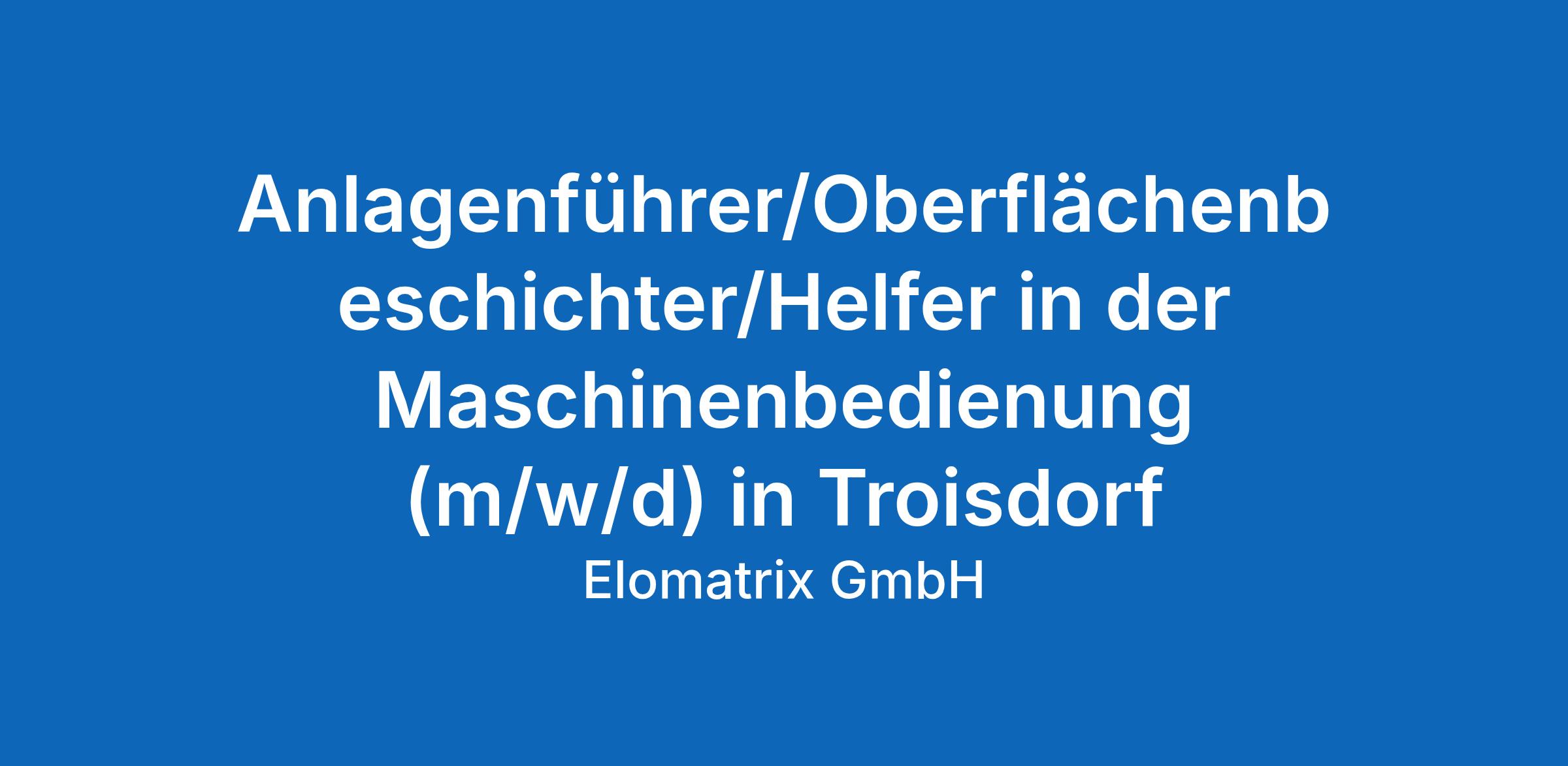 Die ELOMATRIX GmbH beschäftigt am idyllisch gelegenen Standort in Troisdorf aktuell rund 20 Mitarbeiter:innen. Als kleines mittelständisches Unternehmen stehen für uns die Zufriedenheit unserer Beschäftigten und unserer Kunden an den ersten Stellen. Nutzen Sie Ihre Chance und werden auch Sie Teil unseres Teams. Wir bieten Ihnen ein berufliches Zuhause mit langfristigen Beschäftigungsperspektiven und interessanten Entwicklungsmöglichkeiten.