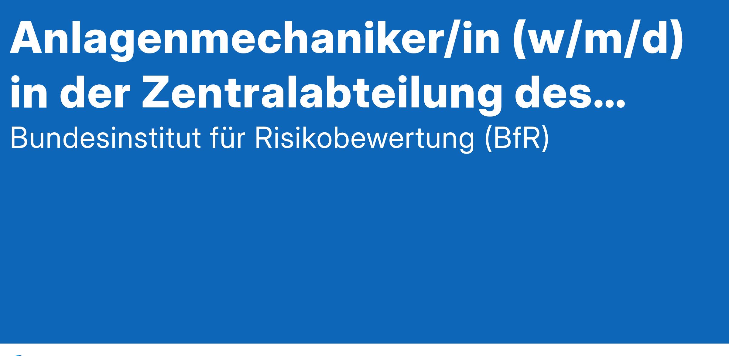Anlagenmechaniker/in (w/m/d) in der Zentralabteilung des Bundesinstituts für Risikobewertung (BfR)