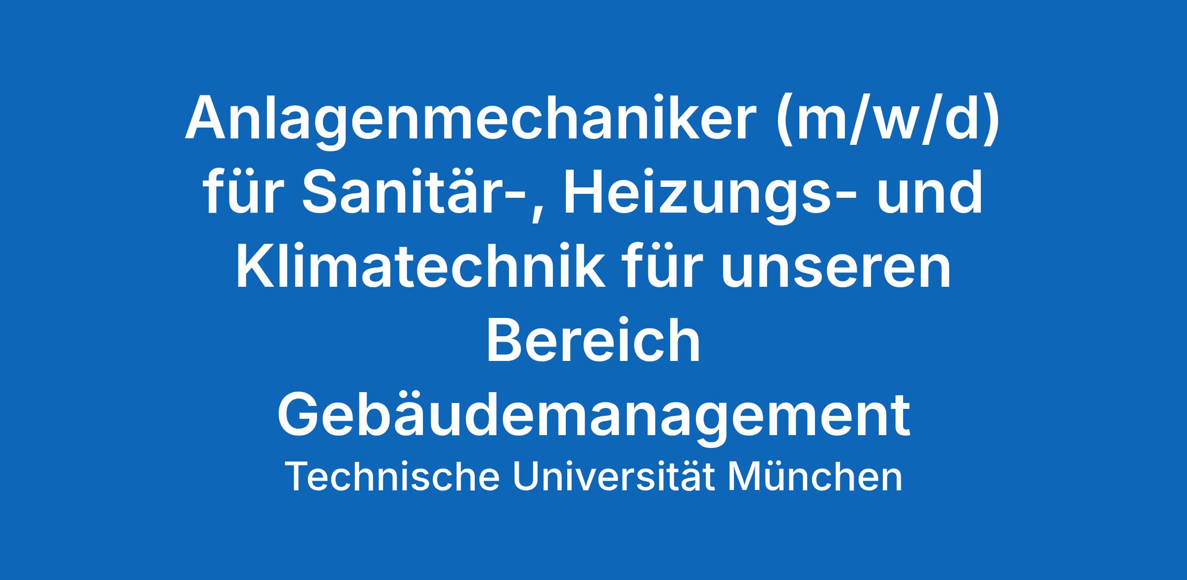 Als Teil der Zentralen Verwaltung der Technischen Universität München (TUM) sorgt die Zentralabteilung 4 - Immobilien an allen Standorten der TUM dafür, den Wissenschaftlern und Wissenschaftlerinnen und sowie den Studierenden aus aller Welt die bestmögliche Infrastruktur für Forschung und Lehre bereitzustellen, zu erhalten und an sich verändernde Rahmenbedingungen anzupassen. Zur Ergänzung unseres Teams am Standort Garching wir Sie zum nächstmöglichen Zeitpunkt als bis zu zwei