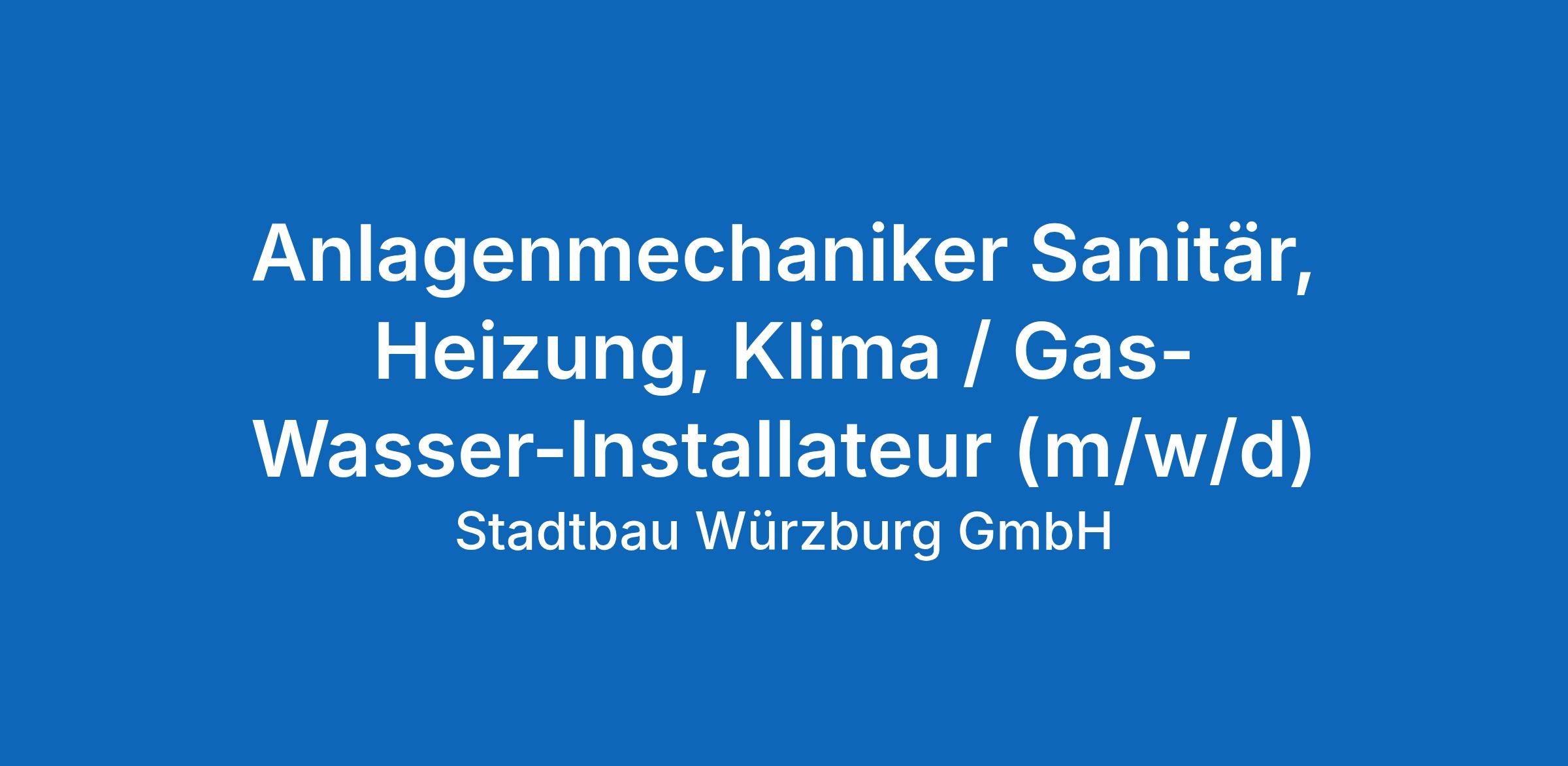 Anlagenmechaniker Sanitär, Heizung, Klima (m/w/d) oder Gas-Wasser-Installateur (m/w/d)