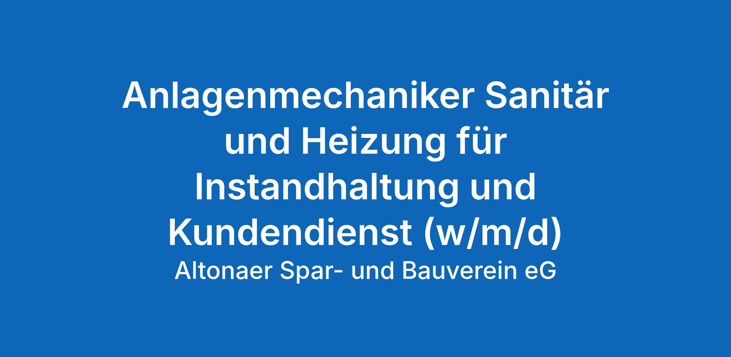 Anlagenmechaniker Sanitär und Heizung für Instandhaltung und Kundendienst (w/m/d) - in Vollzeit