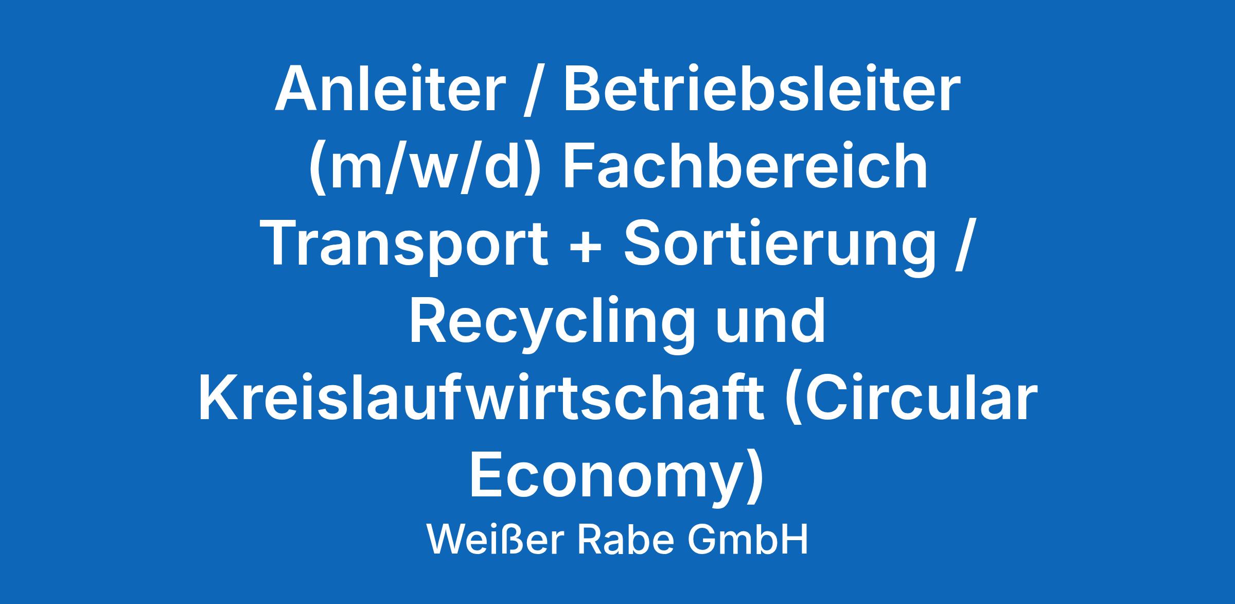Fachbereich Transport + Sortierung / Recycling und Kreislaufwirtschaft (Circular Economy)