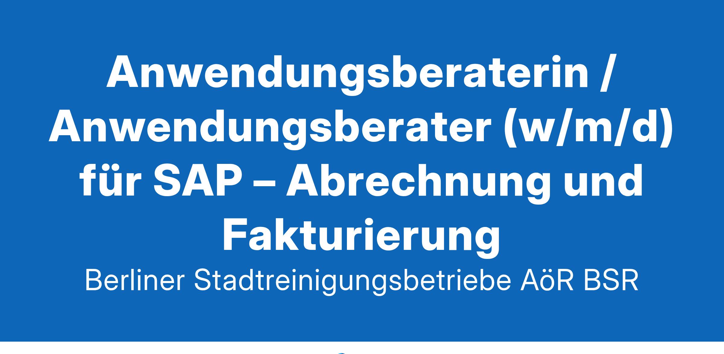 Die BSR als ihre ArbeitgeberinBerlin gemeinsam besser, grüner und sauberer machen – das ist unsere Mission als größtes kommunales Entsorgungsunternehmen Deutschlands. Dafür suchen wir engagierte Persönlichkeiten.Für unseren Geschäftsbereich IT suchen wir am Standort Ringbahnstraße eine:nAnwendungsberaterin / Anwendungsberater (w/m/d) für SAP – Abrechnung und Fakturierung