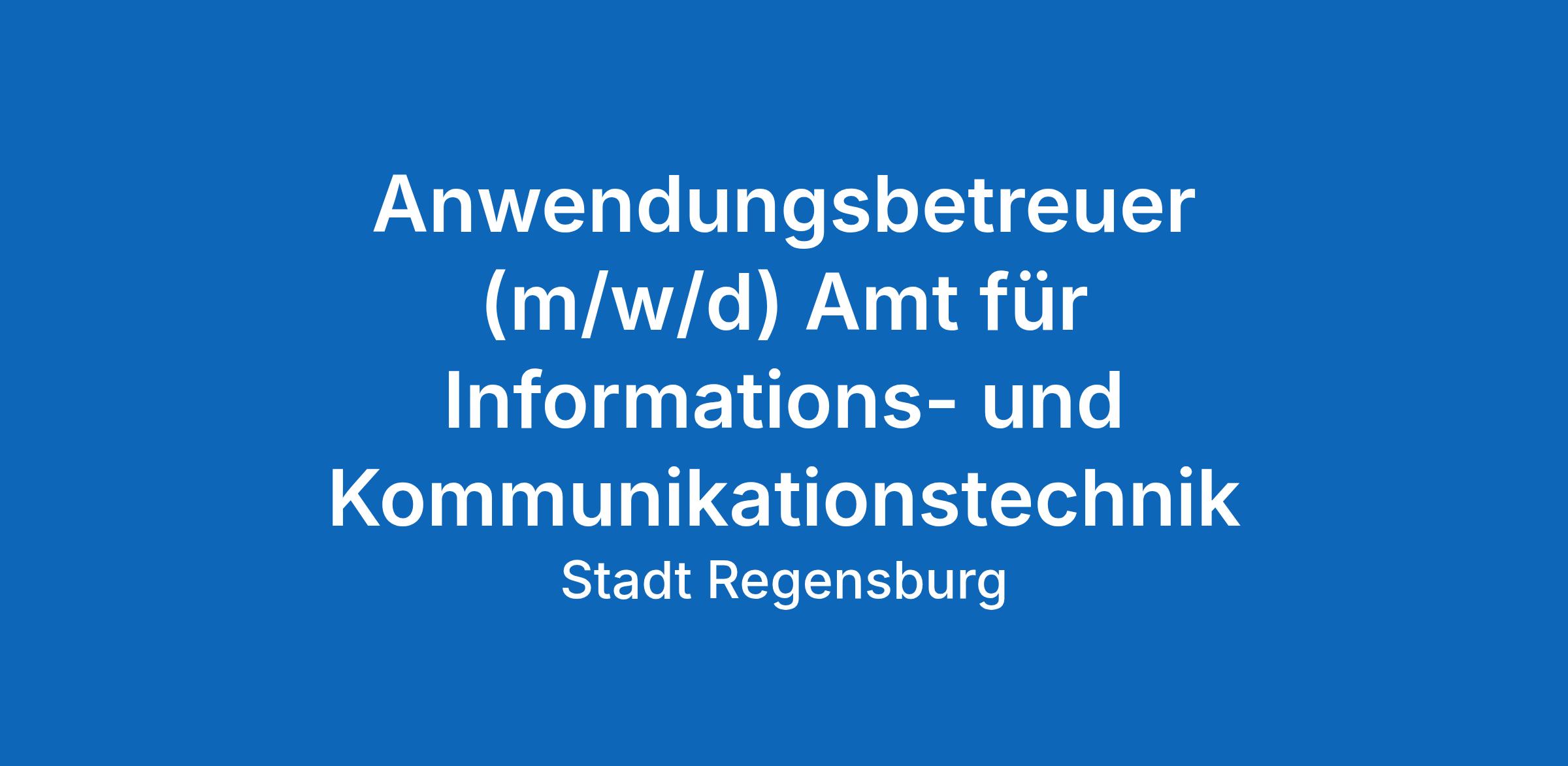 Gemeinsam mit der Stadt Regensburg die Zukunft gestalten! Wir suchen für das Amt für Informations- und Kommunikationstechnik eine/-n Anwendungsbetreuer/-in (m/w/d).