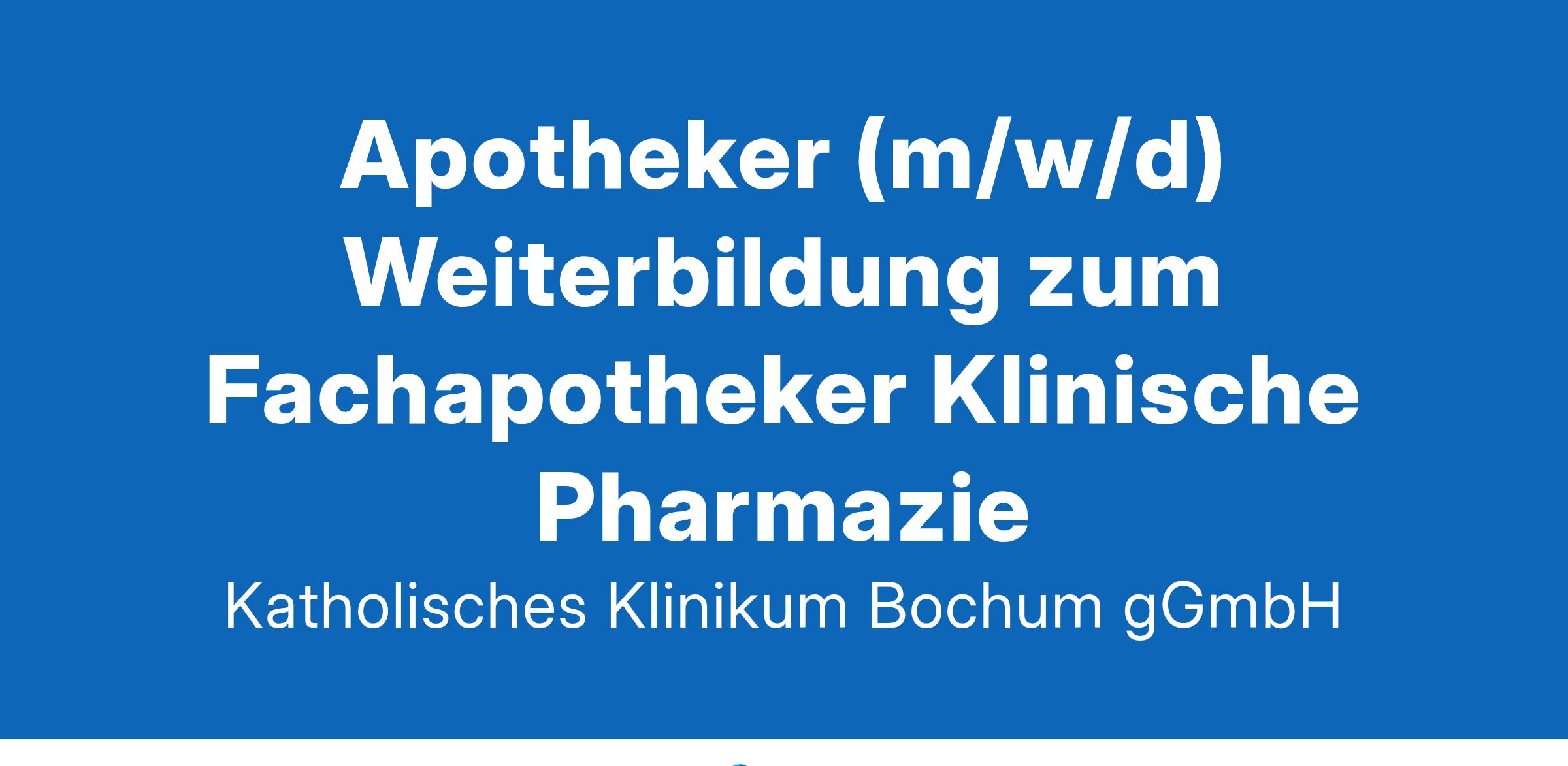 Apotheker (m/w/d) Weiterbildung zum Fachapotheker Klinische Pharmazie Das Katholische Klinikum Bochum ist ein Krankenhausverbund der Maximalversorgung und Träger von zehn Einrichtungen. An den sechs Standorten St. Josef-Hospital, St. Elisabeth-Hospital, St. Maria-Hilf-Krankenhaus, Marien-Hospital Wattenscheid, Martin-Luther-Krankenhaus und der Klinik Blankenstein mit insgesamt 1.570 Betten versorgen wir jährlich über 240.000 stationäre und ambulante Patienten aus der gesamten Region. In unserem Klinikverbund vereinen mehr als 5.500 Mitarbeiterinnen und Mitarbeiter Spitzenmedizin und Forschung. Die Zentralapotheke am Standort St. Josef-Hospital, Universitätsklinikum der Ruhr-Universität Bochum, stellt die Arzneimittelversorgung aller Betriebsstätten des Katholischen Klinikums Bochum sicher. Sie verfügt über eine Kommissionierungsanlage sowie über ein modernes Sterillabor, in dem jährlich unter anderem ca. 15.000 Zytostatika hergestellt werden. Die Zentralapotheke ist Weiterbildungsstätte für klinische Pharmazie. Apotheker (m/w/d) für die Weiterbildung zum Fachapotheker (m/w/d) für Klinische Pharmazie zum frühestmöglichen Eintrittstermin in Vollzeit Die Zentralapotheke am Standort St. Josef-Hospital, Universitätsklinikum der Ruhr-Universität Bochum, stellt die Arzneimittelversorgung aller Betriebsstätten des Katholischen Klinikums Bochum sicher. Sie verfügt über eine Kommissionierungsanlage sowie über ein modernes Sterillabor, in dem jährlich unter anderem ca. 15.000 Zytostatika hergestellt werden. Die Zentralapotheke ist Weiterbildungsstätte für klinische Pharmazie. Das Katholische Klinikum Bochum ist ein Krankenhausverbund der Maximalversorgung und Träger von zehn Einrichtungen. An den sechs Standorten St. Josef-Hospital, St. Elisabeth-Hospital, St. Maria-Hilf-Krankenhaus, Marien-Hospital Wattenscheid, Martin-Luther-Krankenhaus und der Klinik Blankenstein mit insgesamt 1.570 Betten versorgen wir jährlich über 240.000 stationäre und ambulante Patienten aus der gesamten Region. In unserem Klinikverbund vereinen mehr als 5.500 Mitarbeiterinnen und Mitarbeiter Spitzenmedizin und Forschung. Freuen Sie sich auf Freuen Sie sich auf Abwechslungsreiches, verantwortungsvolles Aufgabengebiet mit Entwicklungsmöglichkeiten Moderne Herstellungsräume Zusätzliche, überwiegend arbeitgeberfinanzierte betriebliche Altersversorgung (KZVK) sowie Möglichkeit der Entgeltumwandlung mit Arbeitgeberzuschuss (KZVK sowie KlinikRente) Tarifliche Vergütung nach den AVR Caritas, diese beinhaltet u.a. eine Weihnachtszuwendung sowie Urlaubsgeld Aktive Unterstützung Ihrer persönlichen und fachlichen Fort- und Weiterbildung (im klinikeigenen Bildungsinstitut sowie bei externen Anbietern) Mindestens 30 Tage Urlaub im Jahr Attraktive Rabattpartnerprogramme (Corporate Benefits) Mobilität: Vergünstigte Parkplätze, Jobticket, Fahrradleasing (BusinessBike) Qualifizierte und umfangreiche Einarbeitung Regelmäßige Mitarbeiterevents (u.a. Sommerfest, Firmenlauf, Adventsfeier und -frühstück) Vergünstigungen bei Sport- und Fitnessangeboten in der hauseigenen RuhrSportReha sowie dem Oase Health Club Bochum Ihr neues Tätigkeitsfeld Ihr neues Tätigkeitsfeld Im Rahmen der Weiterbildung werden Sie alle Aufgabenbereiche der Krankenhauspharmazie kennenlernen. Hier zählen insbesondere: Mitarbeit in der Pharmazeutischen Aufnahme Beratung unserer Ärzte und des Pflegepersonals Betreuung der umfangreichen Zytostatika- und Sterilherstellung sowie der Rezeptur- und Defekturherstellung Durchführung von Stationsbegehungen Mitarbeit bei klinischen Studien Teilnahme am Rufbereitschaftsdienst Was wir uns wünschen Was wir uns wünschen Approbation als Apotheker (m/w/d) Hohes Maß an Eigeninitiative, Motivation und Belastbarkeit Teamfähigkeit und Flexibilität Selbstständiges, strukturiertes und lösungsorientiertes Arbeiten Fachliche, soziale und kommunikative Kompetenzen Ihr Ansprechpartner Sie haben noch weitere Fragen? Dann melden Sie sich gerne ganz unverbindlich bei uns. Wir freuen uns, Sie kennenzulernen! Frau Dr. Irmgard Plößl Bereichsleiterin / Apotheke & Einkauf Tel.: +49 (0)234 509-2727 E-Mail: irmgard.ploessl@klinikum-bochum.de www.klinikum-bochum.de