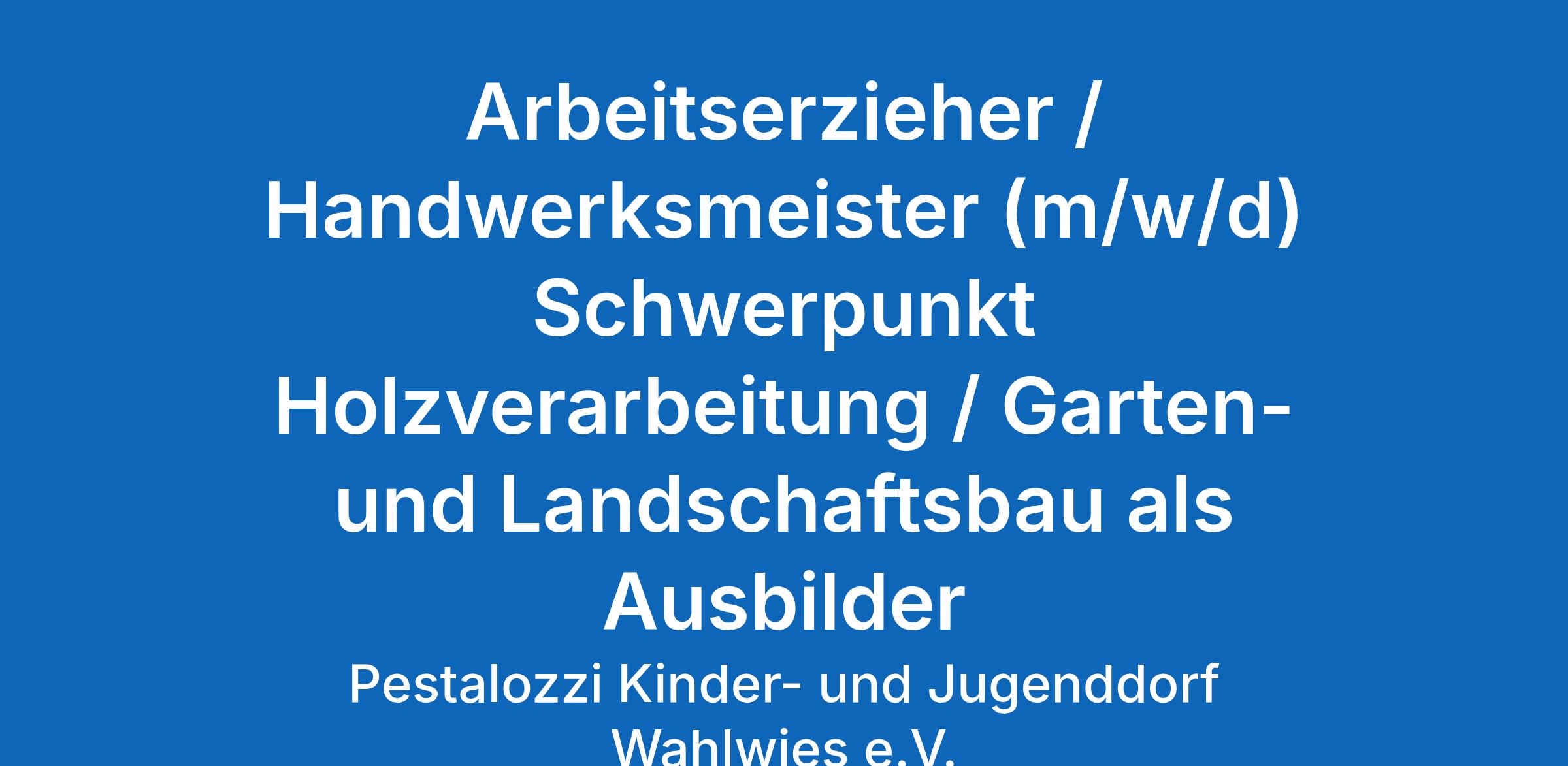 Arbeitserzieher / Handwerksmeister (m/w/d) Schwerpunkt Holzverarbeitung / Garten- und Landschaftsbau als Ausbilder