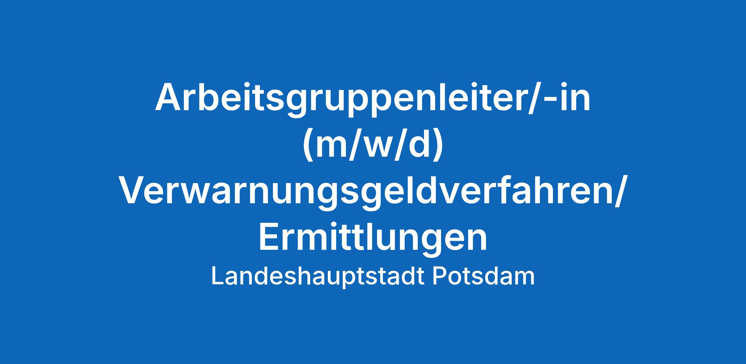 Arbeitsgruppenleiter/-in (m/w/d) Verwarnungsgeldverfahren/Ermittlungen