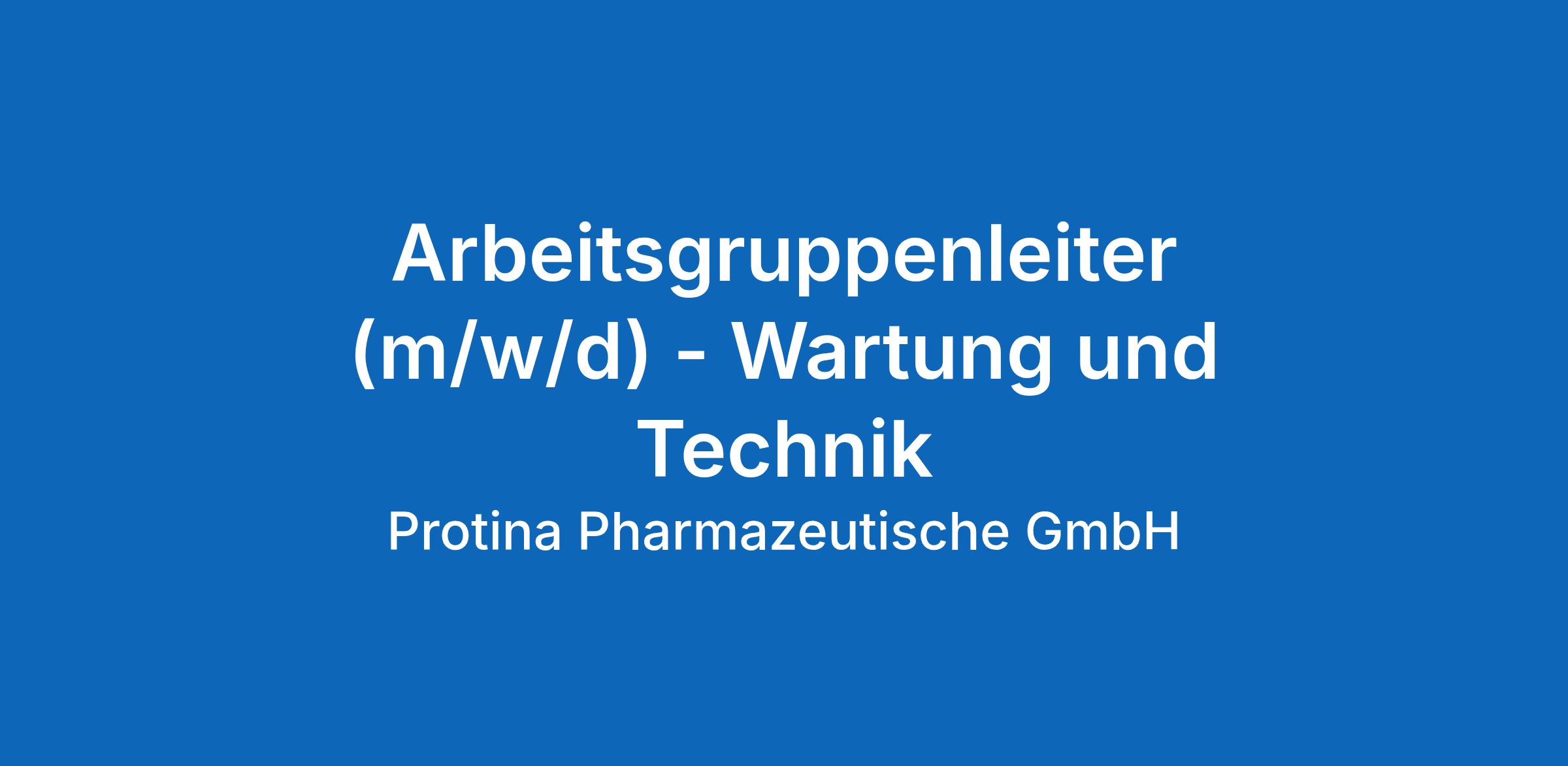 Arbeitsgruppenleiter (m/w/d) – Wartung und Technik