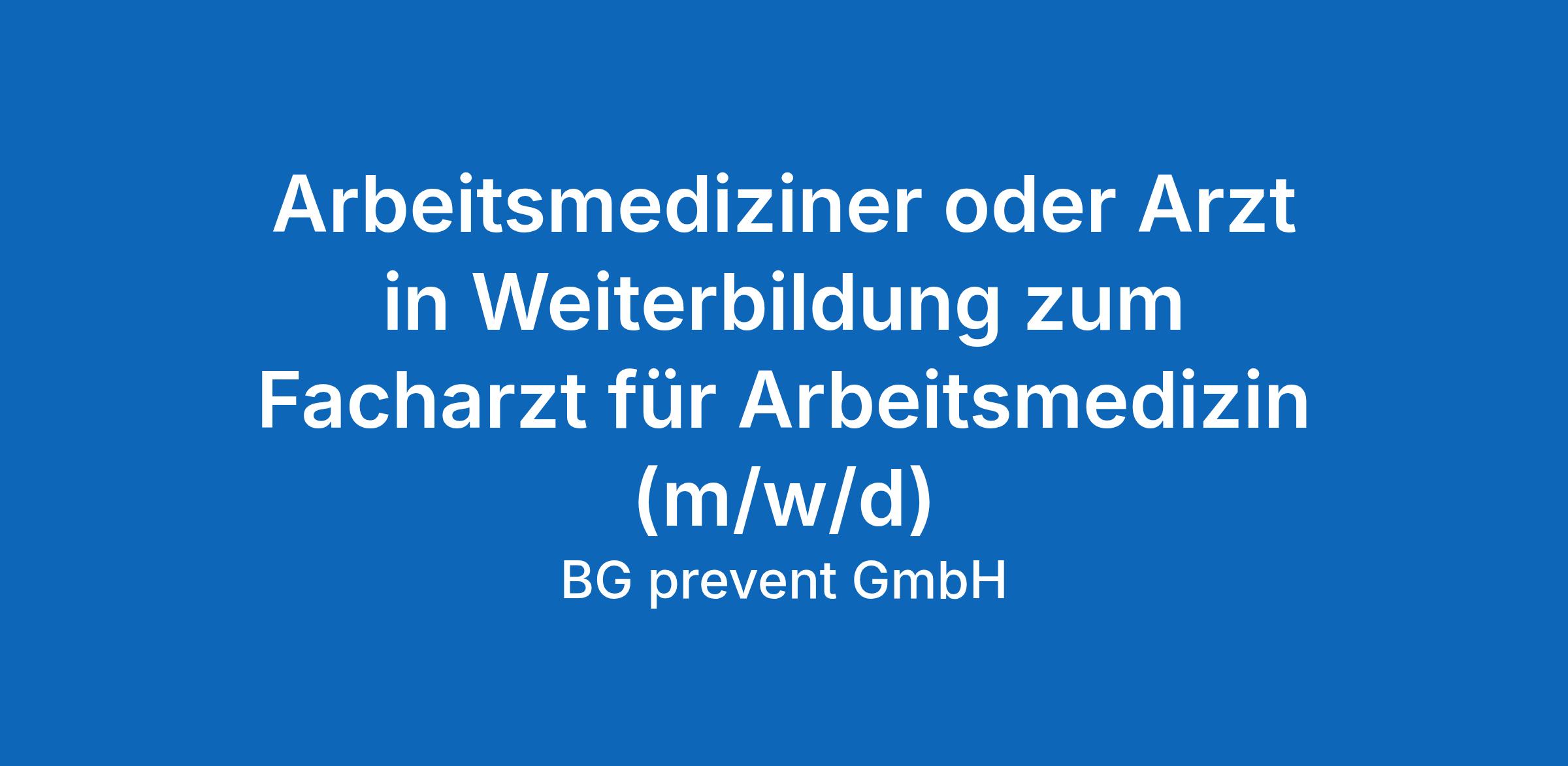 Arbeitsmediziner oder Arzt in Weiterbildung zum Facharzt für Arbeitsmedizin (m/w/d)