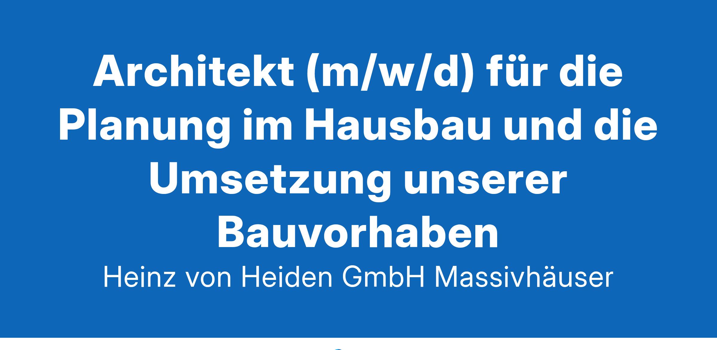 Sie sind bereit für eine neue Herausforderung? Sie möchten Ihre Talente in einem innovativen Umfeld beweisen und von den Vorteilen eines finanzstarken Familienunternehmens als zuverlässiger Arbeitgeber profitieren? Willkommen bei Heinz von Heiden GmbH Massivhäuser. Wir sind mit mehr als 54.000 gebauten Massivhäusern eines der führenden Unternehmen der Branche. Wir beraten und betreuen unsere Kunden auf höchstem Niveau mit Kompetenz und maßgeschneiderten Lösungen.