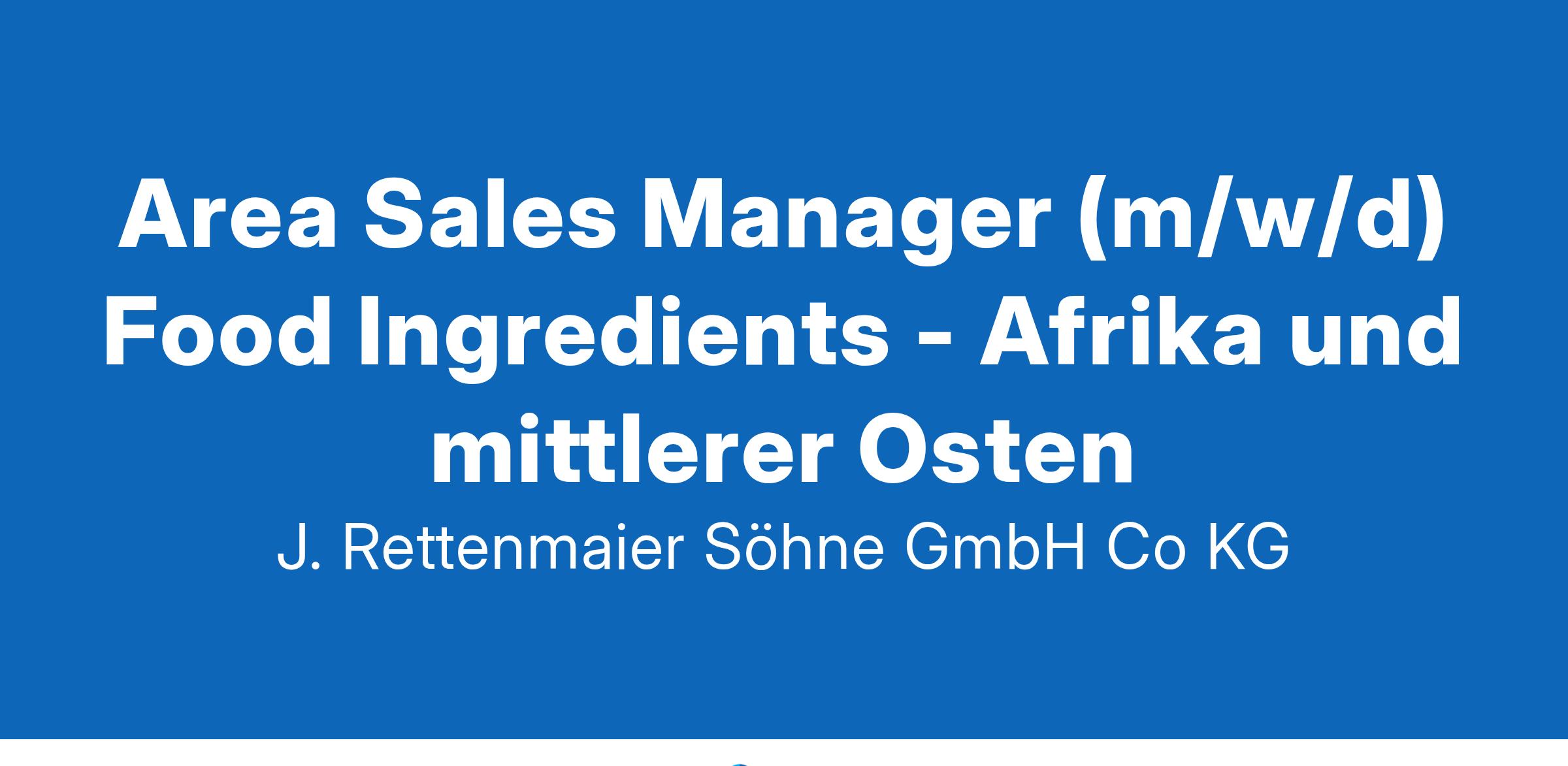 Area Sales Manager (m/w/d) Food Ingredients - Afrika und mittlerer OstenRosenberg | DE | Vertrieb | Festanstellung | VollzeitJRS ist Know-how- und Weltmarktführer für nachhaltige und funktionale Pflanzenfaser-Technologie. Als attraktiver Arbeitgeber wachsen wir in der Region und rund um den Globus. Dadurch können wir unseren Mitarbeiter*innen neben einem sicheren Arbeitsplatz in einer Zukunftsbranche viele interessante Aufgaben und Perspektiven bieten. Damit wir auch in Zukunft weiterhin wachsen können, freuen wir uns über engagierte Kolleg*innen, die gemeinsam mit uns die Welt nachhaltig besser machen wollen.Ich freue mich auf Ihre Bewerbung!Ihr Ansprechpartner: